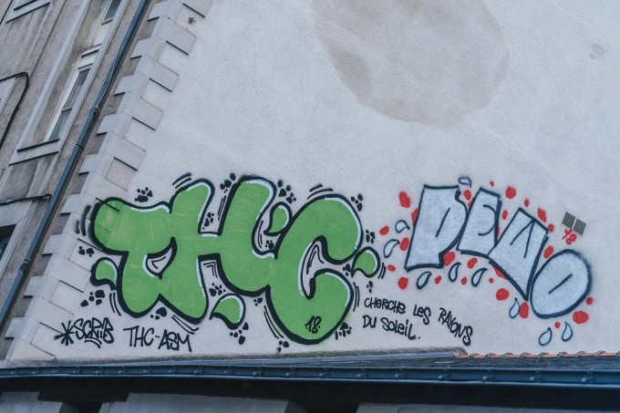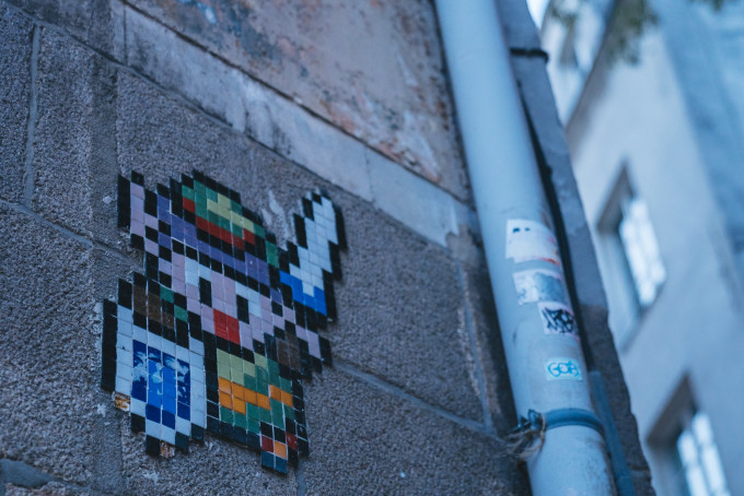 ▼ 走在南特的街头,你会不经意在墙上看到各式各样的图案,马赛克,涂鸦,金属......我不知道到底有多少这样的东西充斥着这座城市,我的头就像开了360度全景摄像头,努力探索着这里的奥秘。