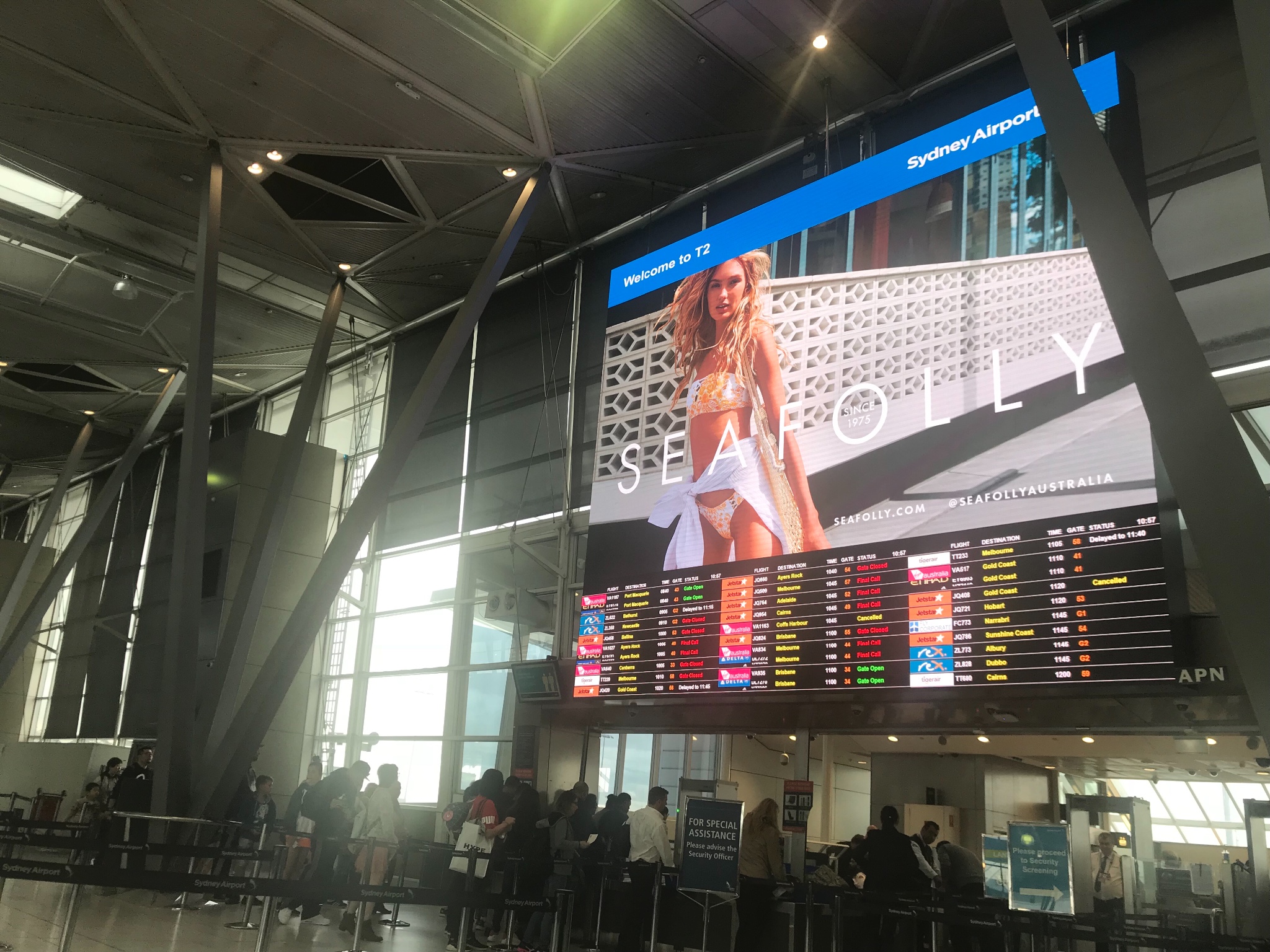 悉尼到墨尔本是乘坐廉价航空,要从T1-T2航站楼,在一个标识不清楚的地方找到了免费接驳车,悉尼机场离市区很近也很老规模也不大,因此很难想象这是一个发达国家国际大都市的机场,廉航没有服务都自助打印行李牌登记卡托运都是自己服务,幸好欧洲实习过,这里还算顺利。票在携程订的,这趟还好票是一张订单的行李重量可以共享,回程因为订单分开了每个行李分别称重超了还要重新分配超级麻烦。坐了9个小时飞机然后转机的各种麻烦比较烦躁,结果是机场各种美食安慰了我的胃,还好吧而且银联还有优惠有惊喜