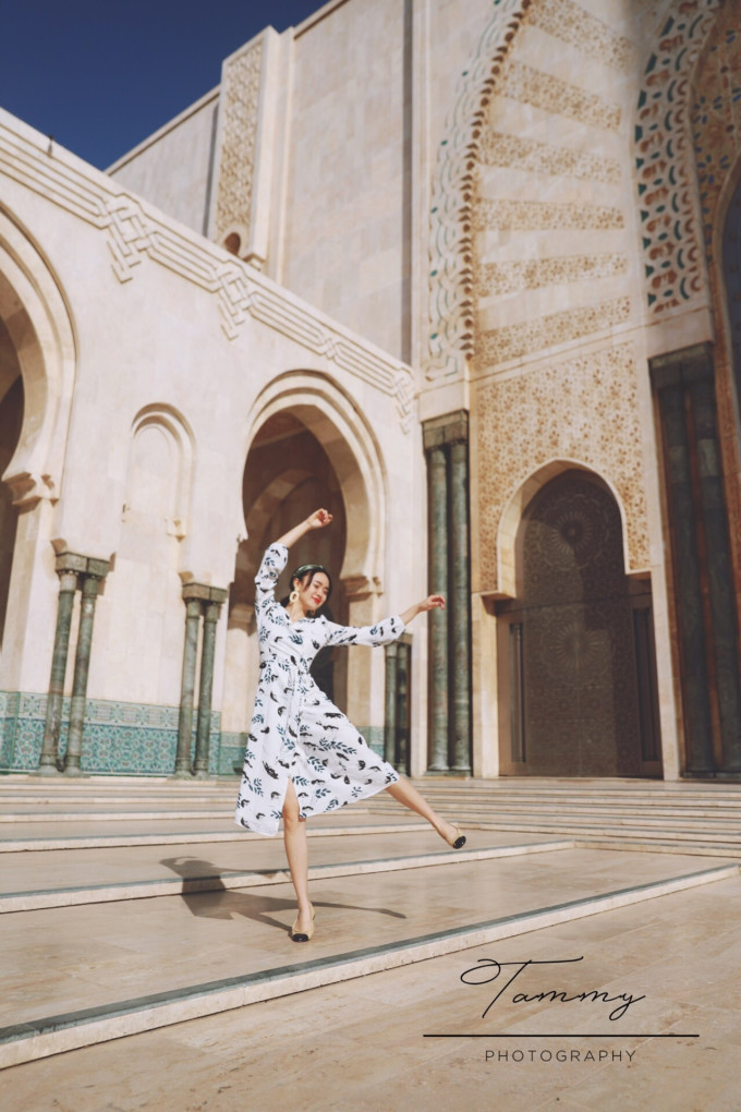 放上我最爱的一张照片,拍摄于早晨的哈桑二世清真寺,我是一个从小连跳健美操都会被体育老师嫌弃四肢不协调的girl,但是当你在这么美的建筑面前享受那么好的阳光,旋转跳跃什么的简直想跳起来~