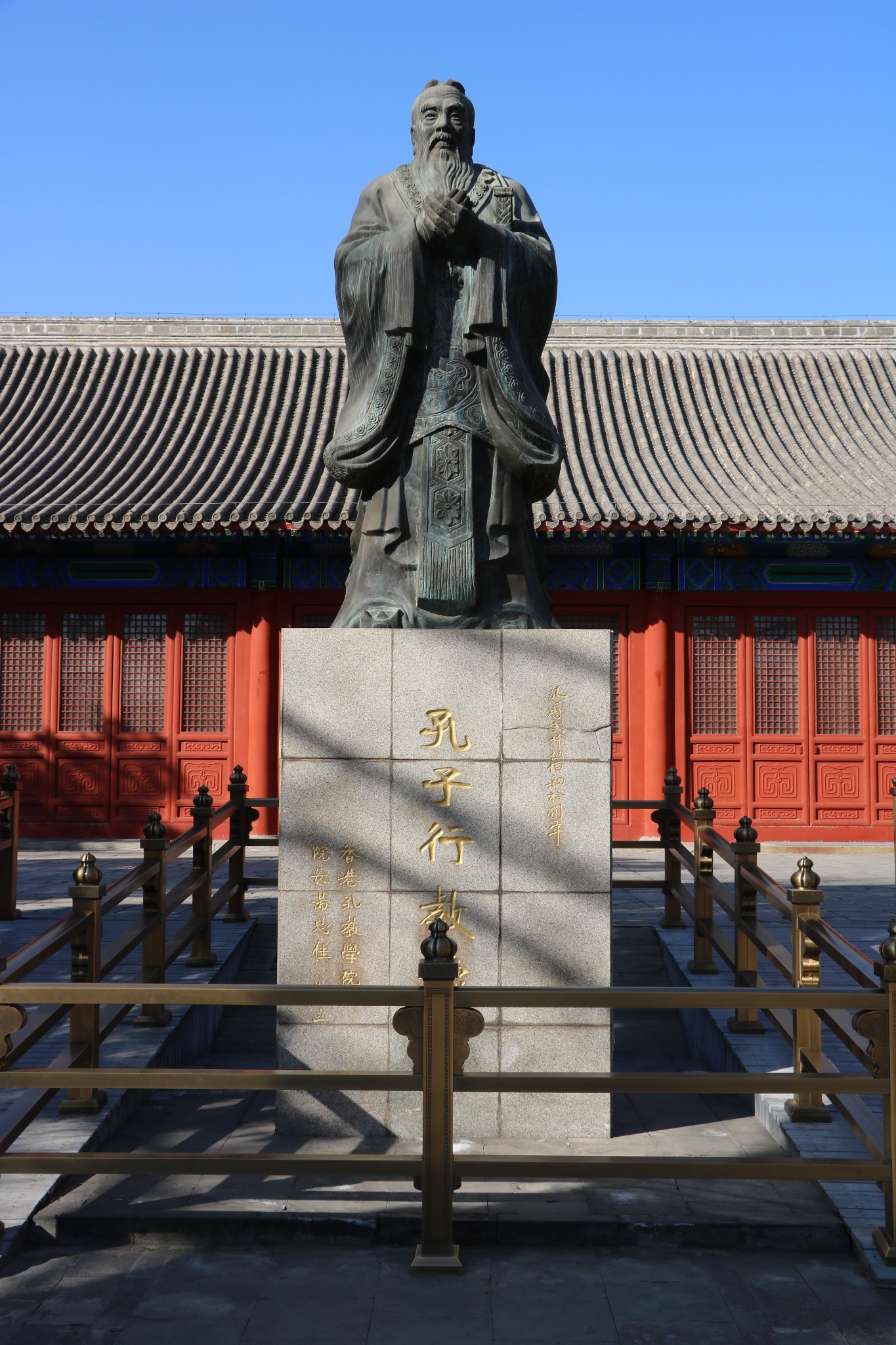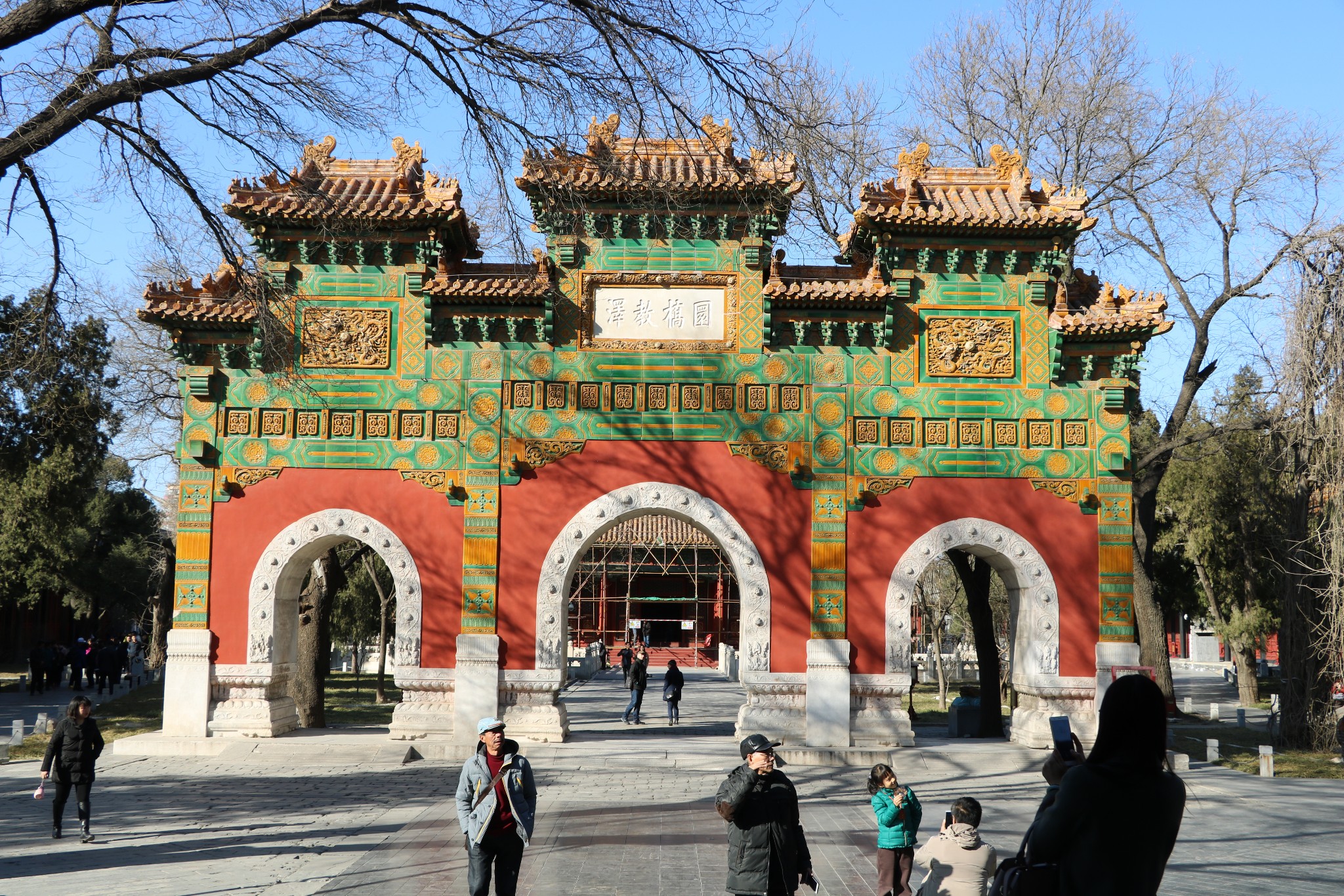 孔庙和国子监博物馆始建于元代,合于“左庙右学”的古制,分别作为皇帝祭祀孔子的场所和中央最高学府。两组建筑群都采取沿中轴线而建、左右对称的中国传统建筑方式,组成了一套完整、宏伟、壮丽的古代建筑群。