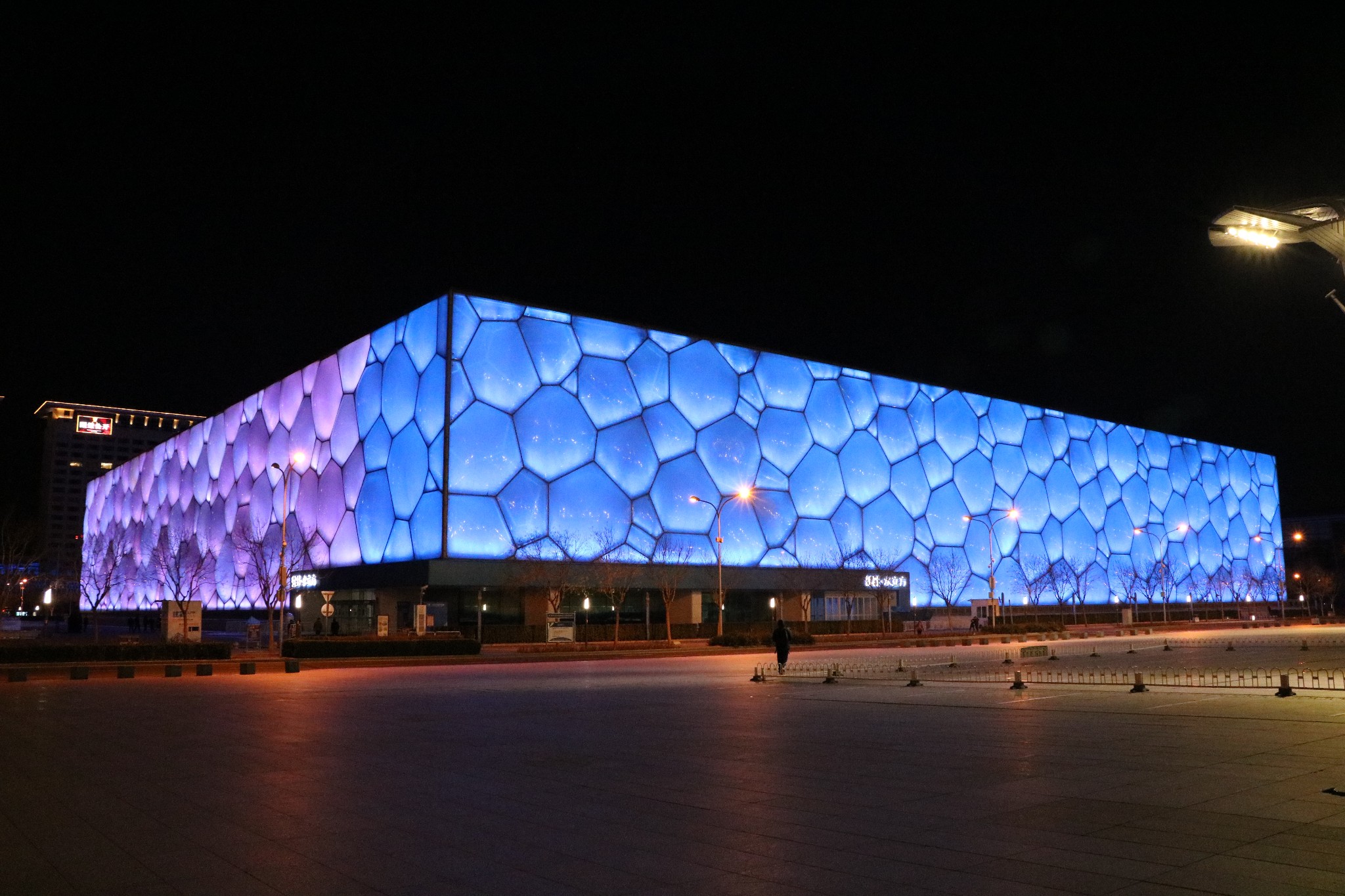 白天进入鸟巢和水立方是要门票的,鸟巢:普通票:50人民币;空中走廊联票:80人民币。水立方:成人票:30人民币。里面其实也没啥好看的,倒不如在外面看看夜景的灯光,我倒觉得很漂亮。