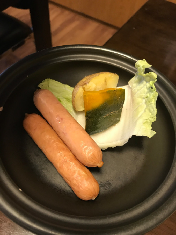 精致的小菜配上烤肠、土豆、南瓜,主食是米饭配味增汤。