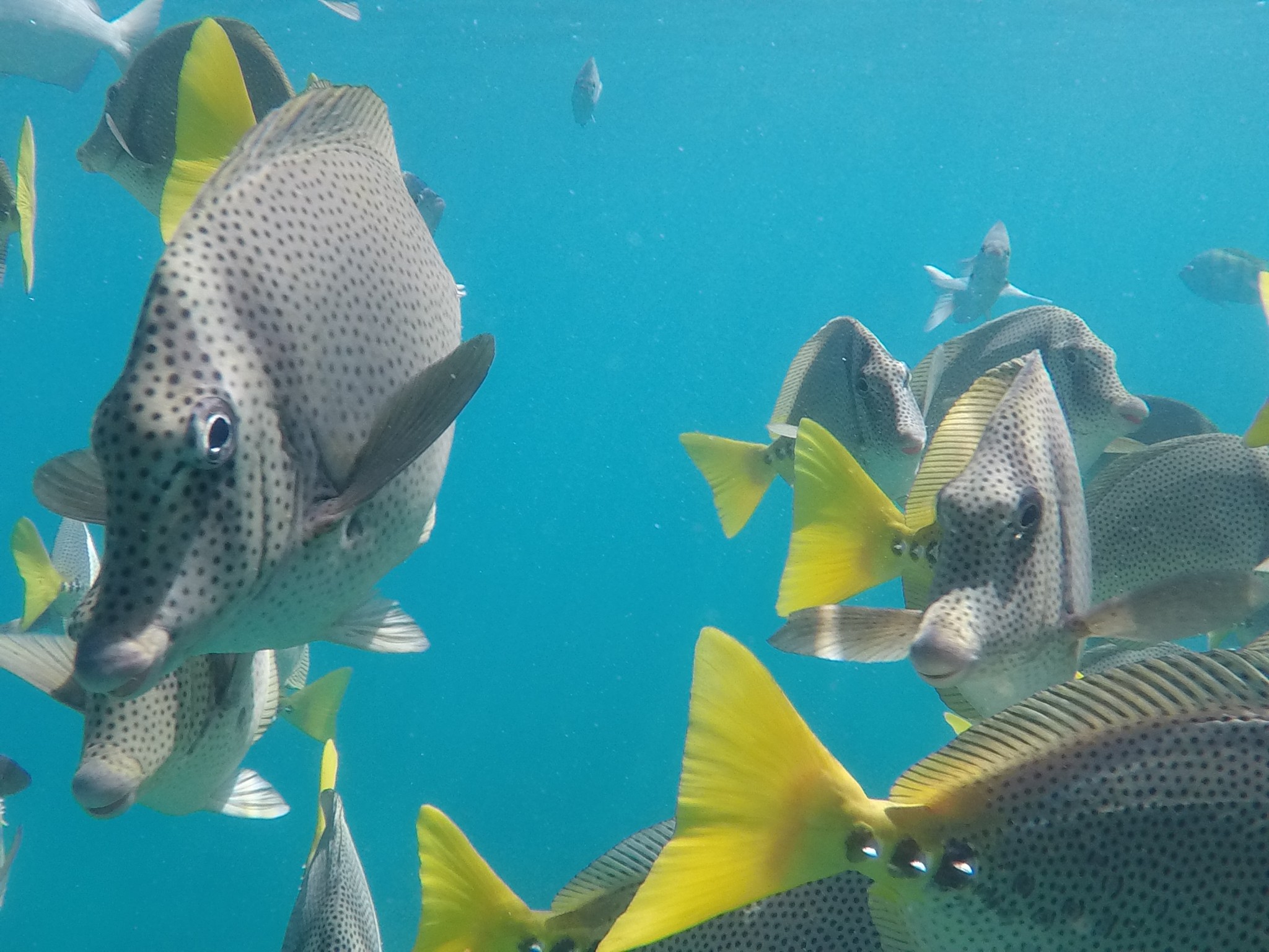 度假村的最后一天,去了Playa Santa Maria海滩。浮潜胜地,水下会遇上鱼群,有一种身处上海南京路的感觉,好多美丽的鱼儿从你身边擦身而过。