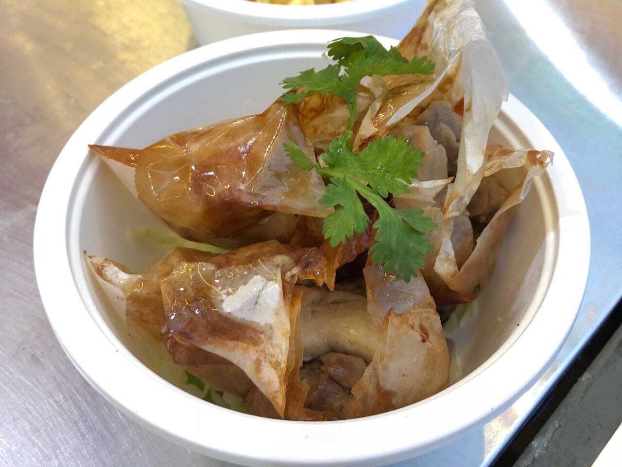 新加坡名菜-纸包鸡。这个纸包鸡要腌制一晚,然后包在纸中炸,再以锅中油慢慢浸熟。撕开纸后,汁油留出,香气逼人。
