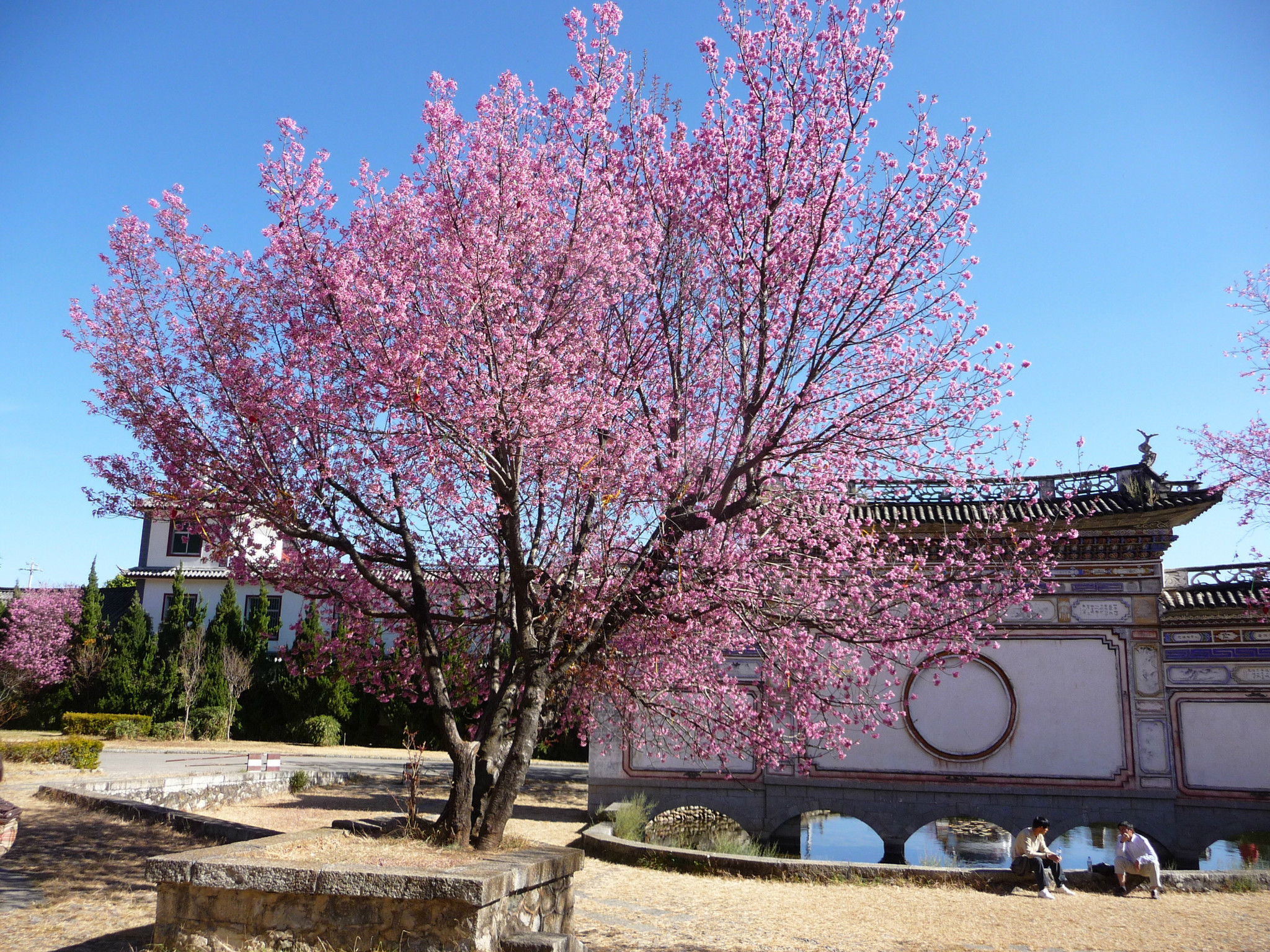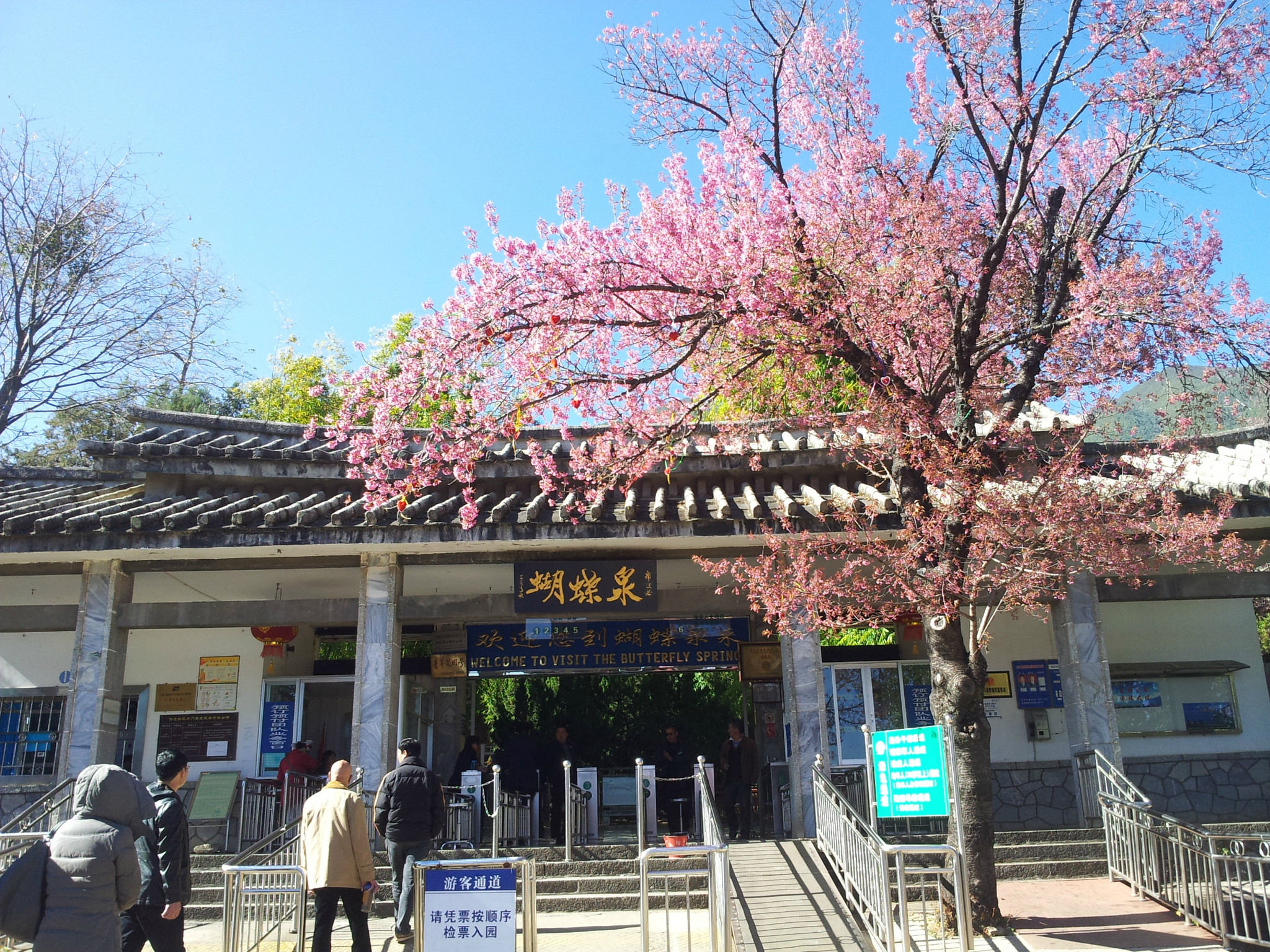 没有进蝴蝶泉景区,大门外的樱花盛开