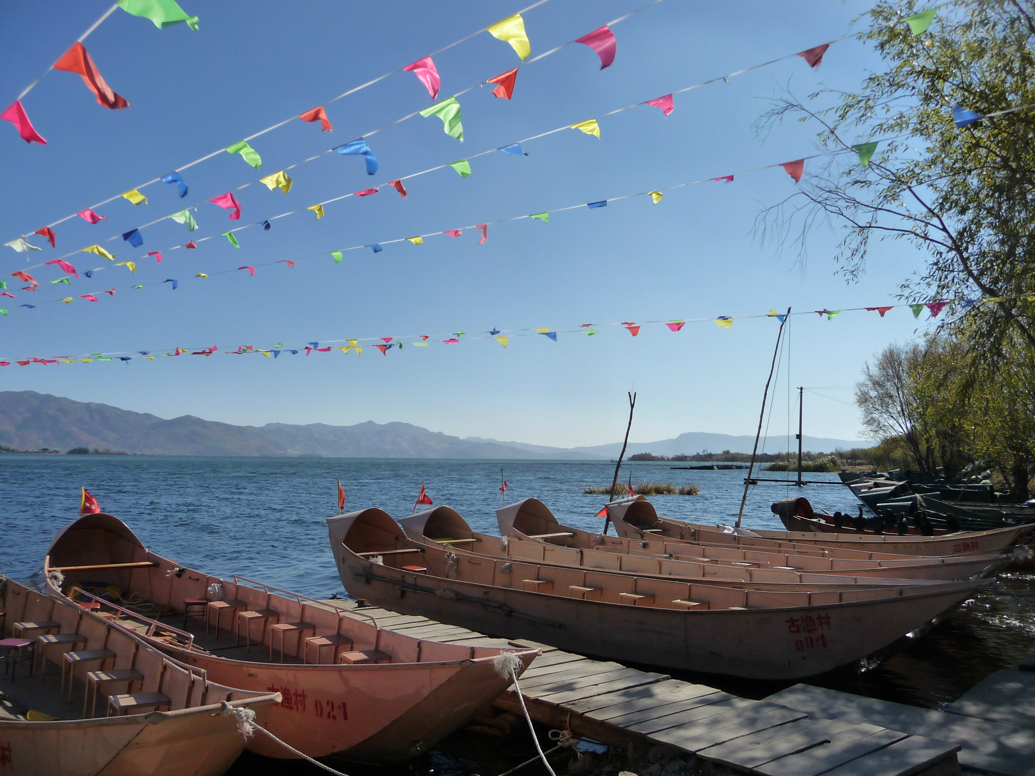 洱海边停泊的小木船。那天风很大,我们没有坐船游玩。