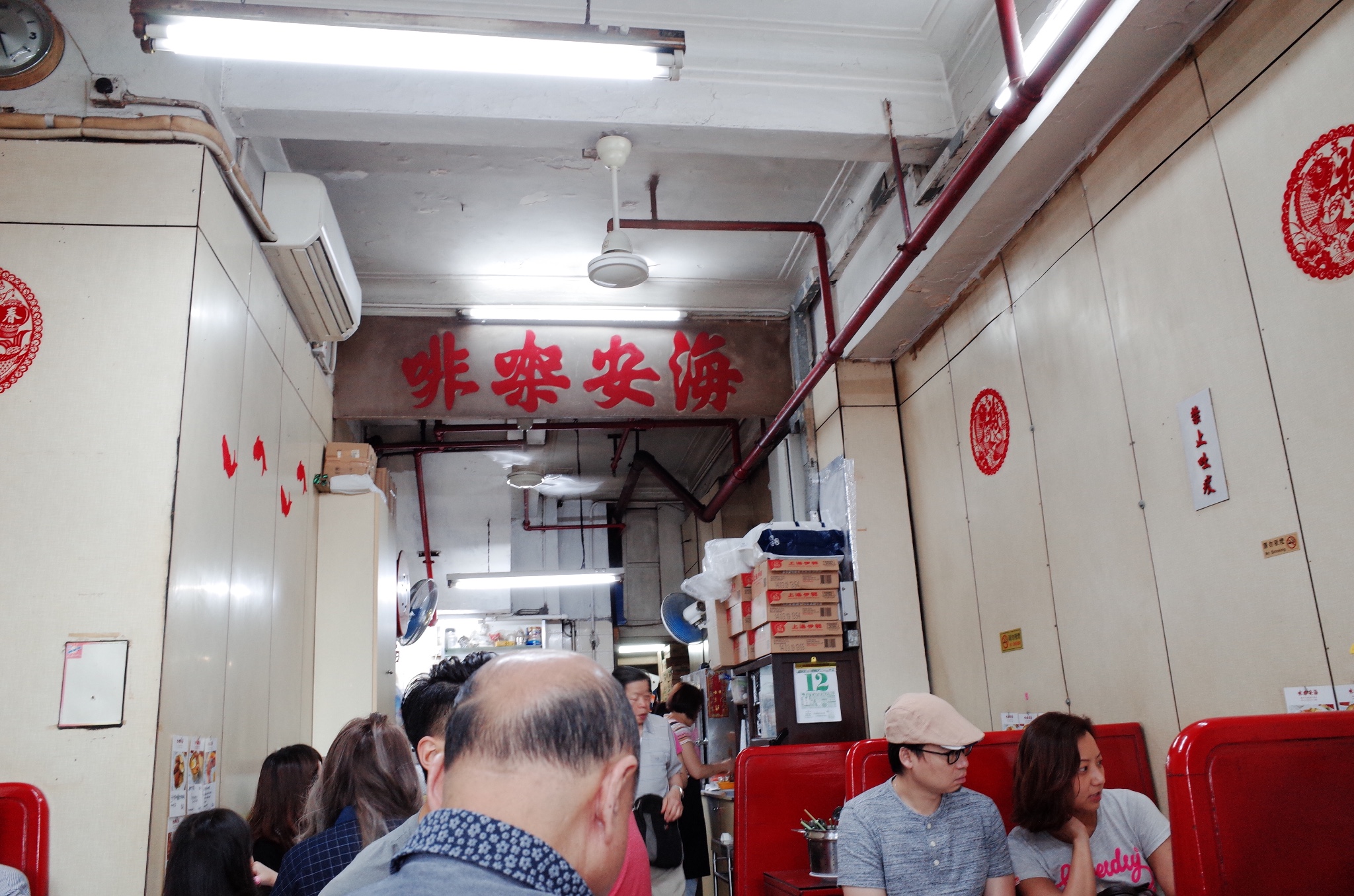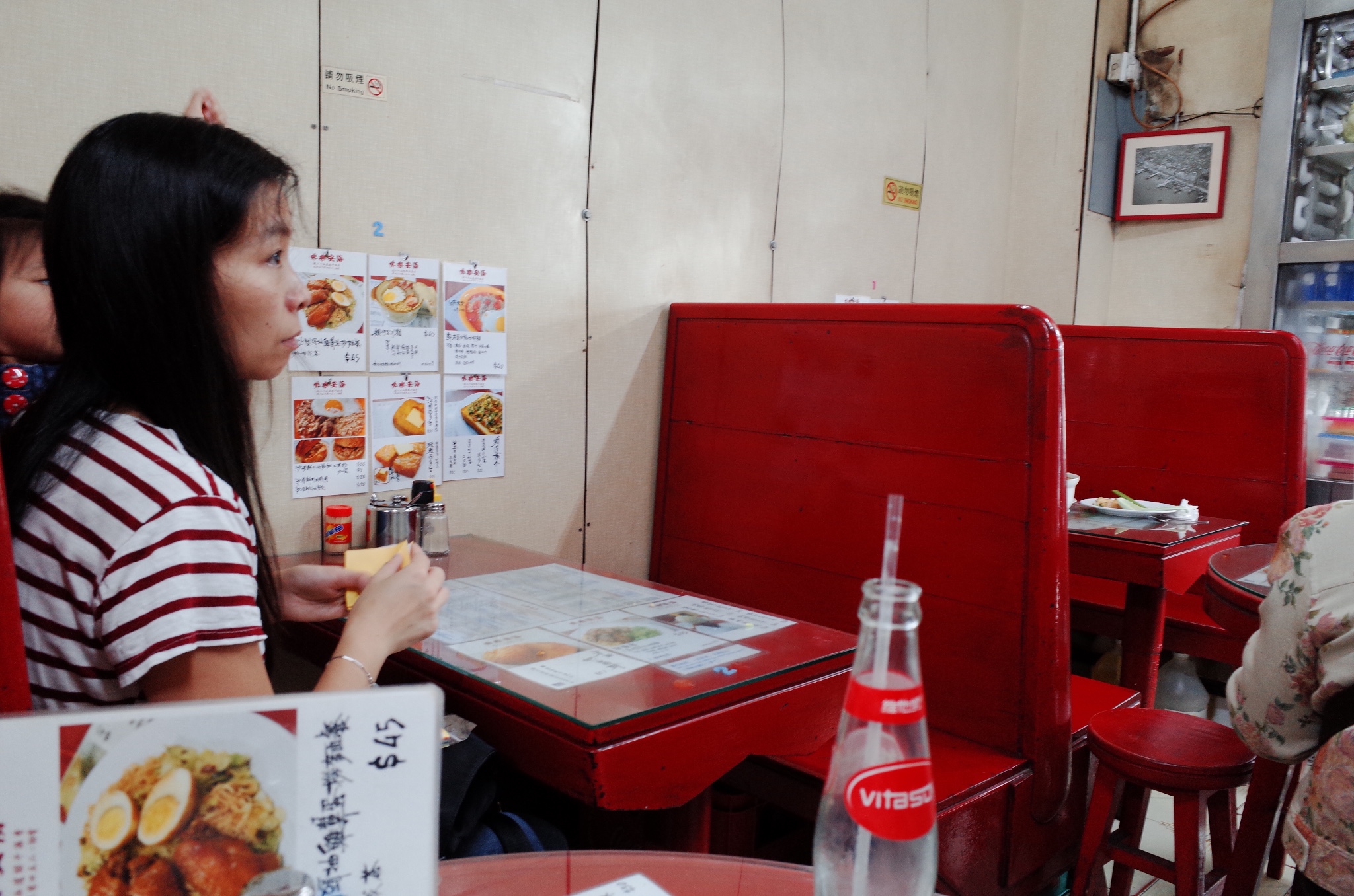 门口真的超级旧,乍一看像已经关门了的店。这家在上环开了有几十年了,进门之后红色的桌椅也瞬间把人带进复古氛围里了。