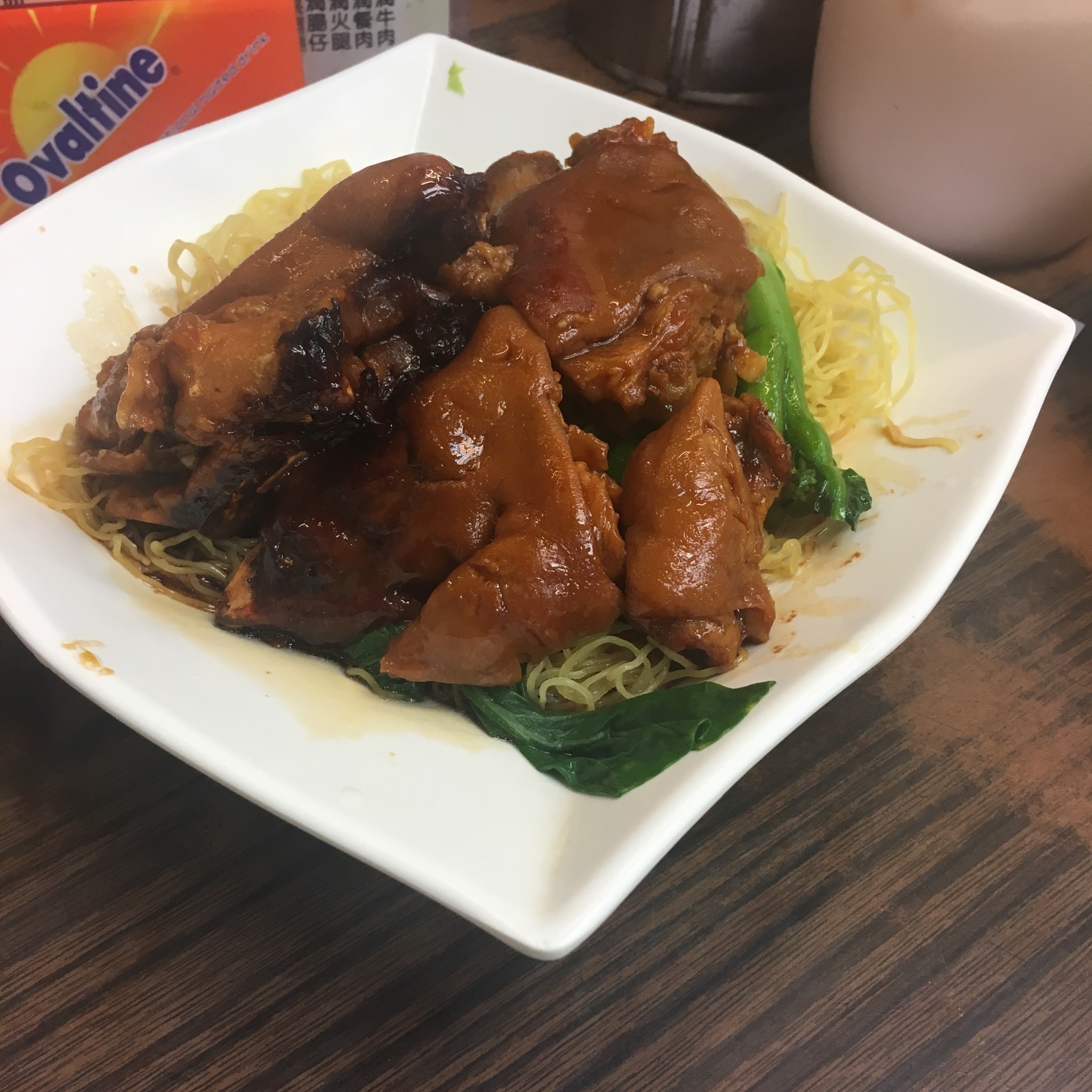 猪手炖的很软烂入味(比文记车仔面的猪手还更软一点儿),虽然量给的还挺多的,不过还是完全吃不够。但是这种类型的面(竹升面吗?)我实在是无力接受,碱味很重,汤面可能会好一些吧。来不及尝“蛋牛治”了,只能下次了,大家可以去试一试。