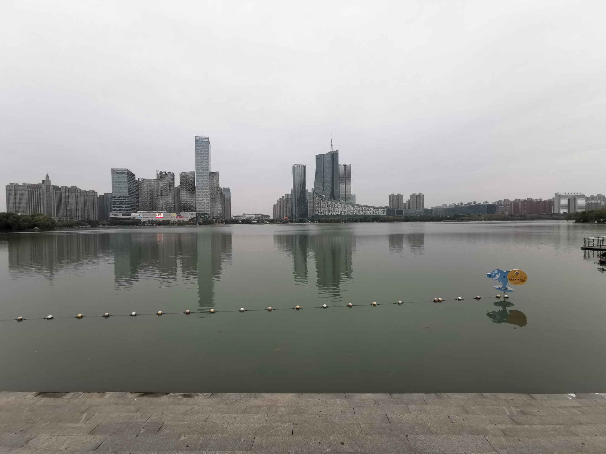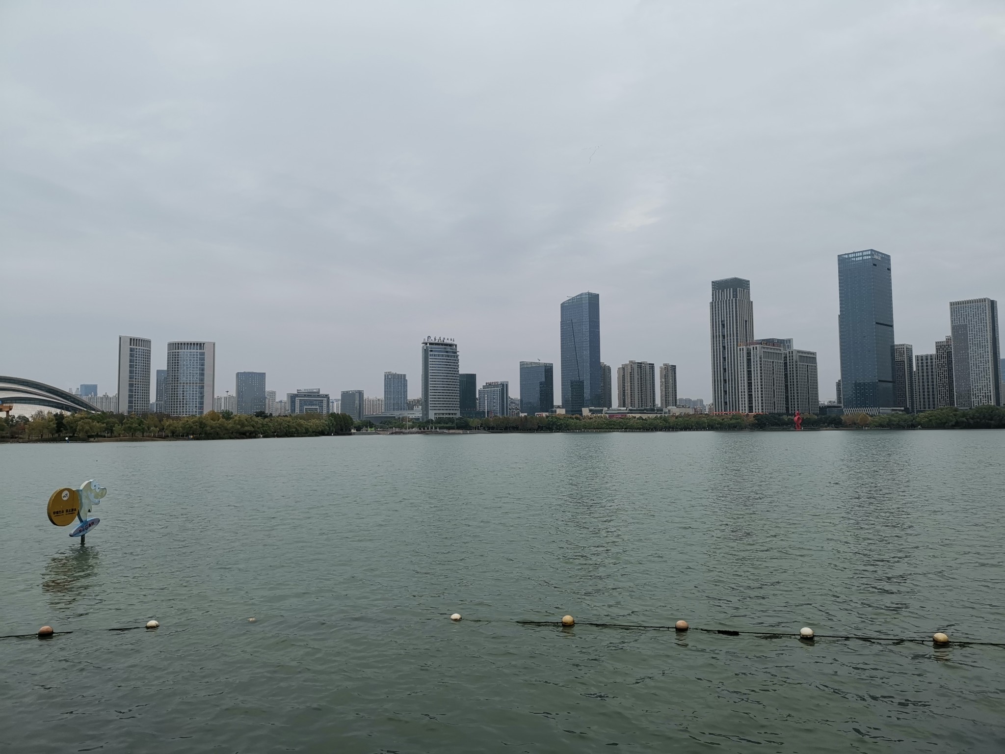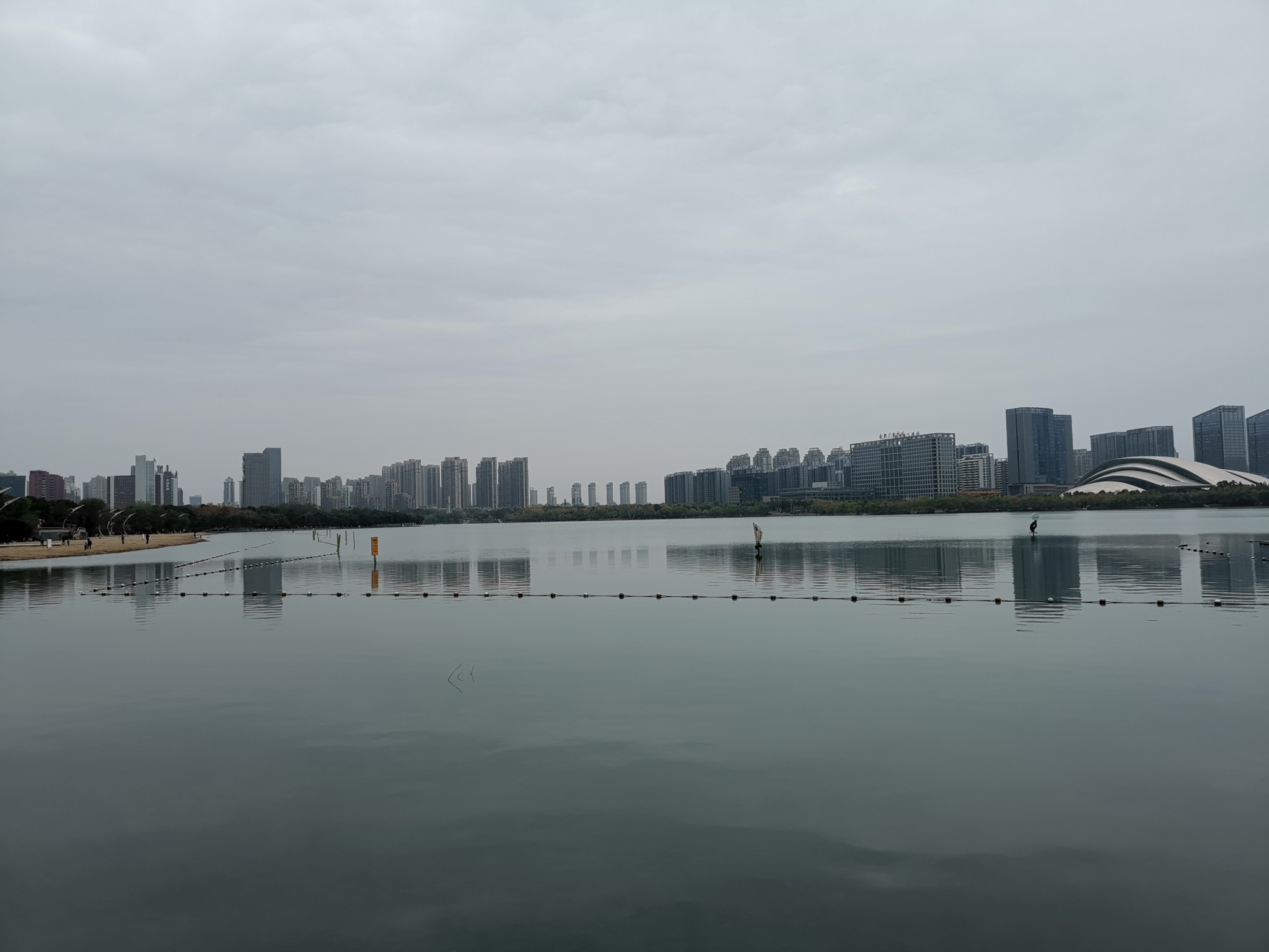 湖西岸是天鹅湖万达城。