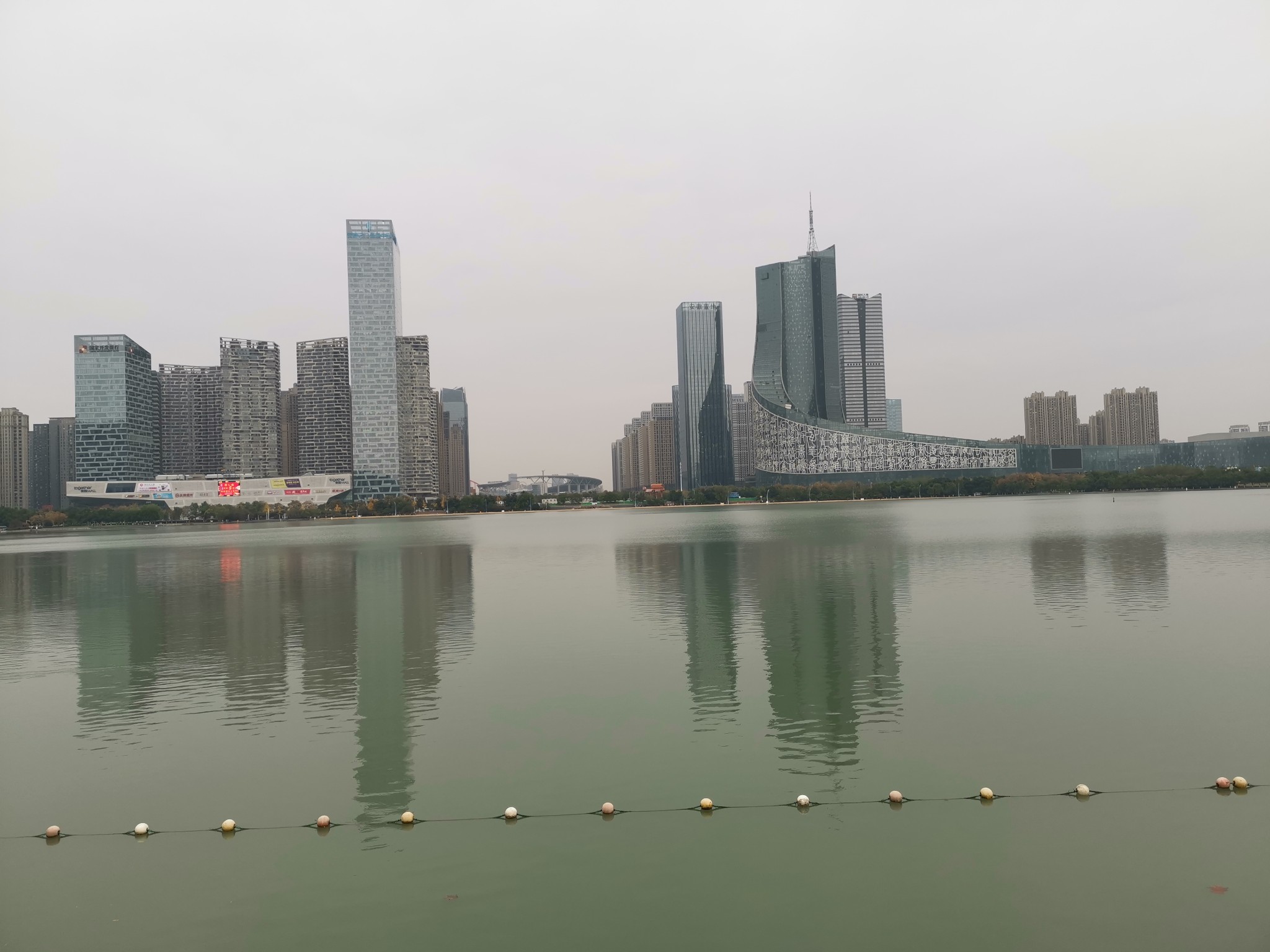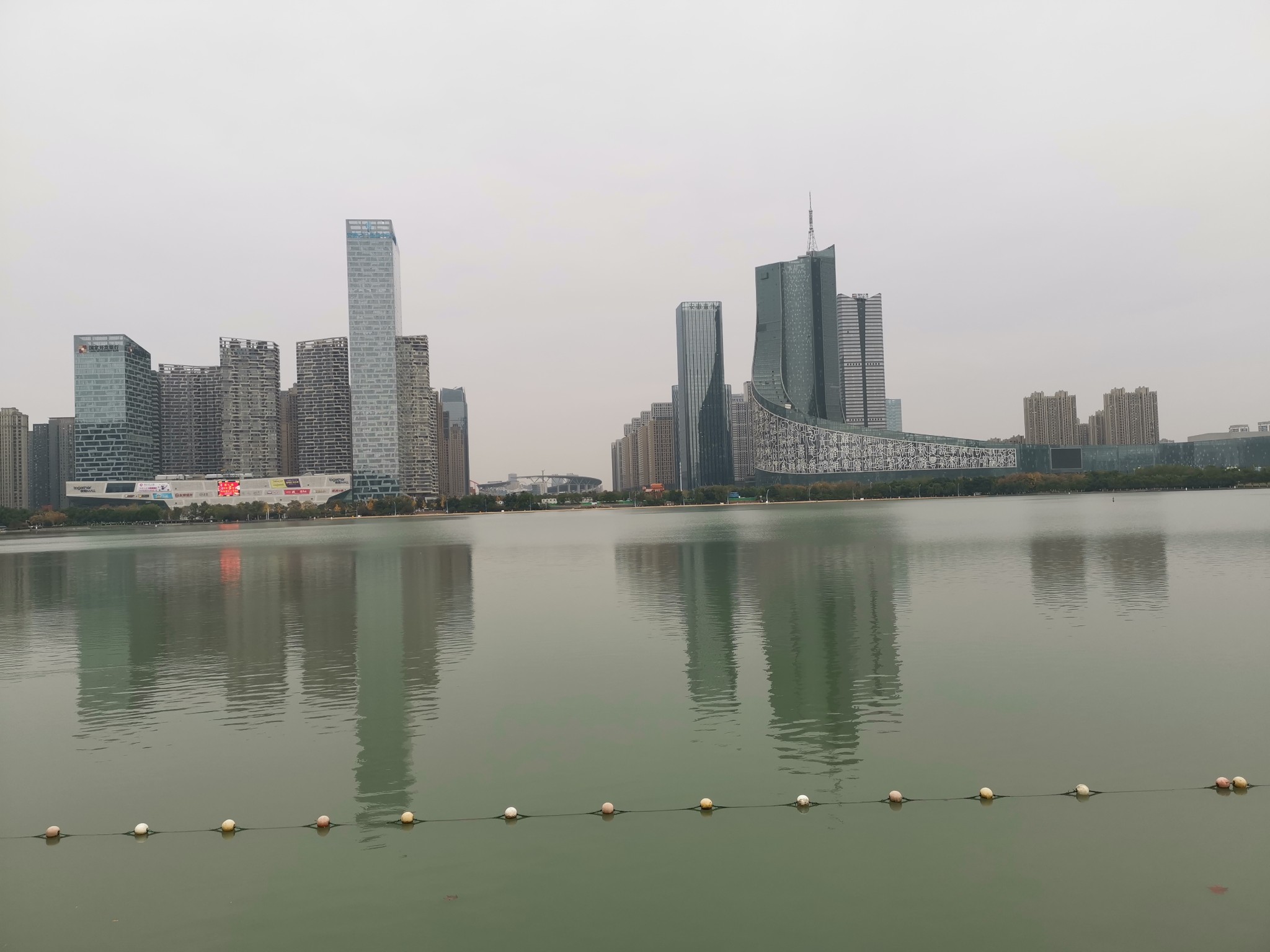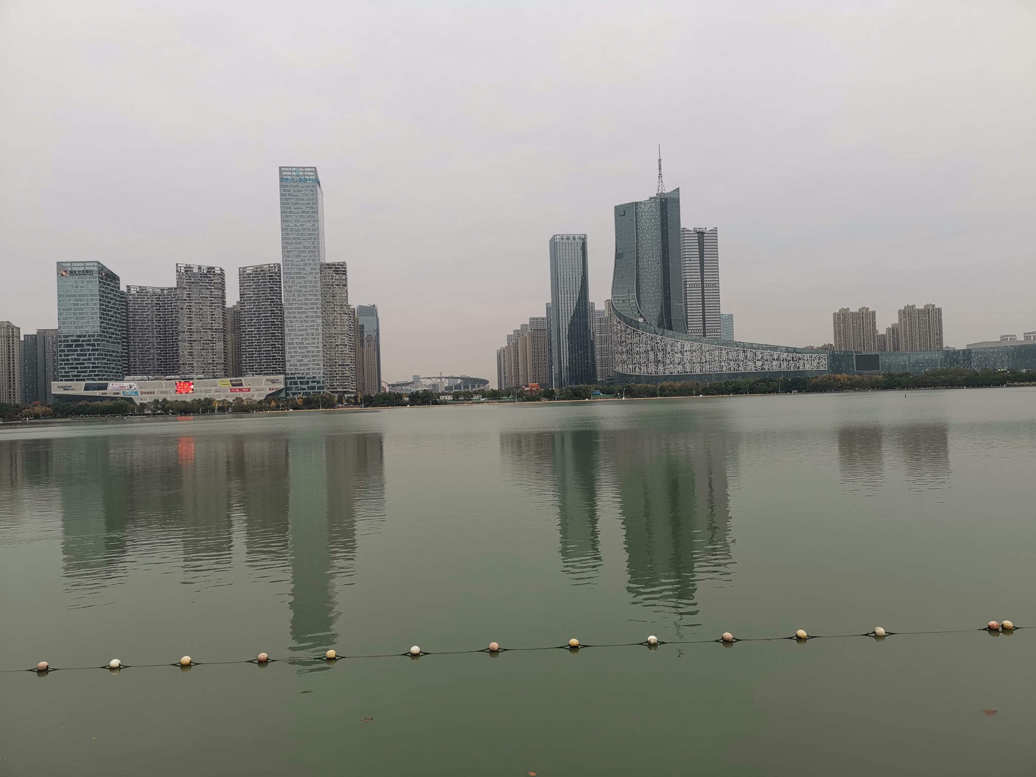 湖西岸是天鹅湖万达城。