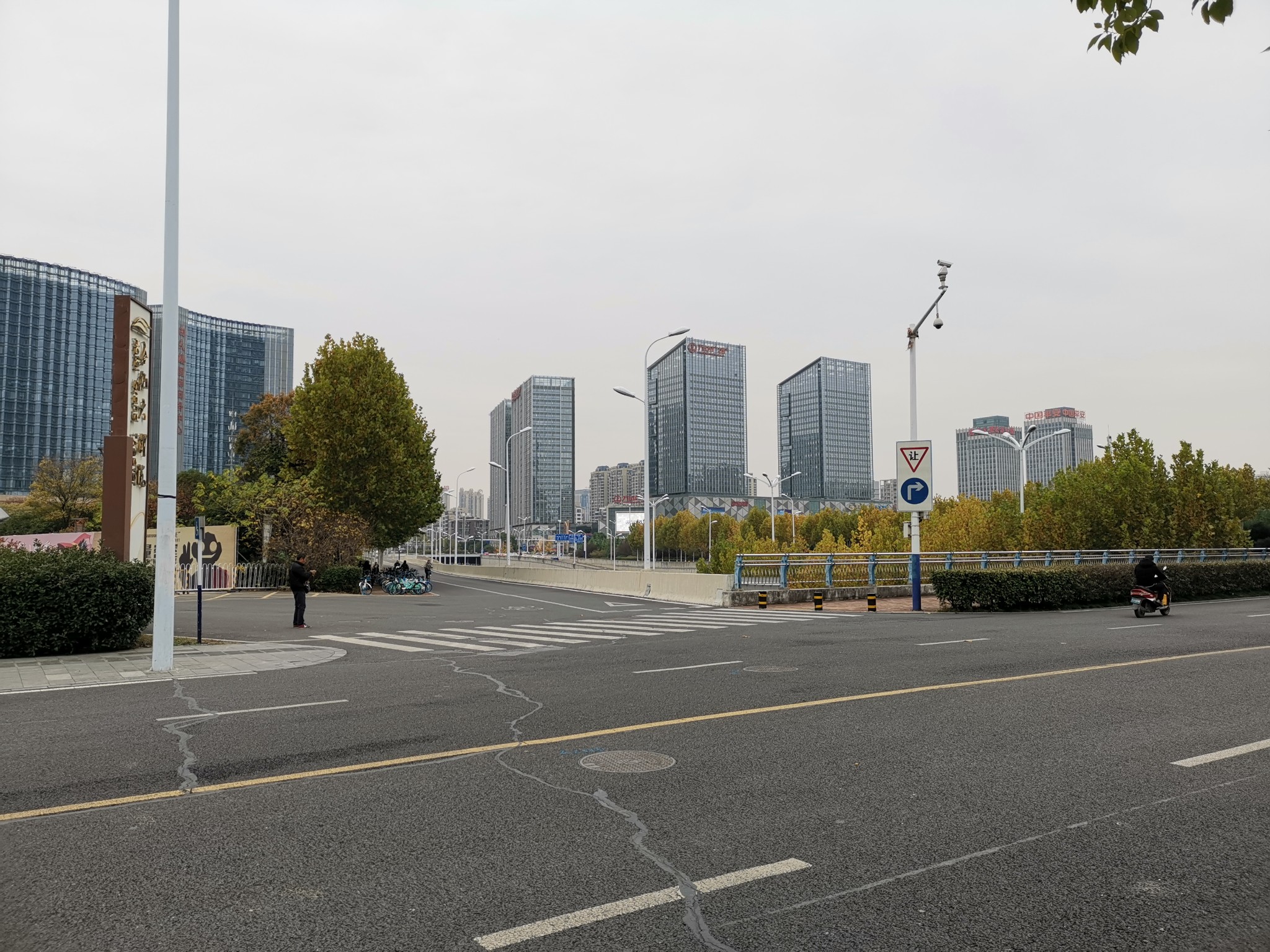 最左边的像火炬一样的高建筑是安徽电视台。安徽电视台是这附近在合肥市以外的中国人中最有存在感的单位