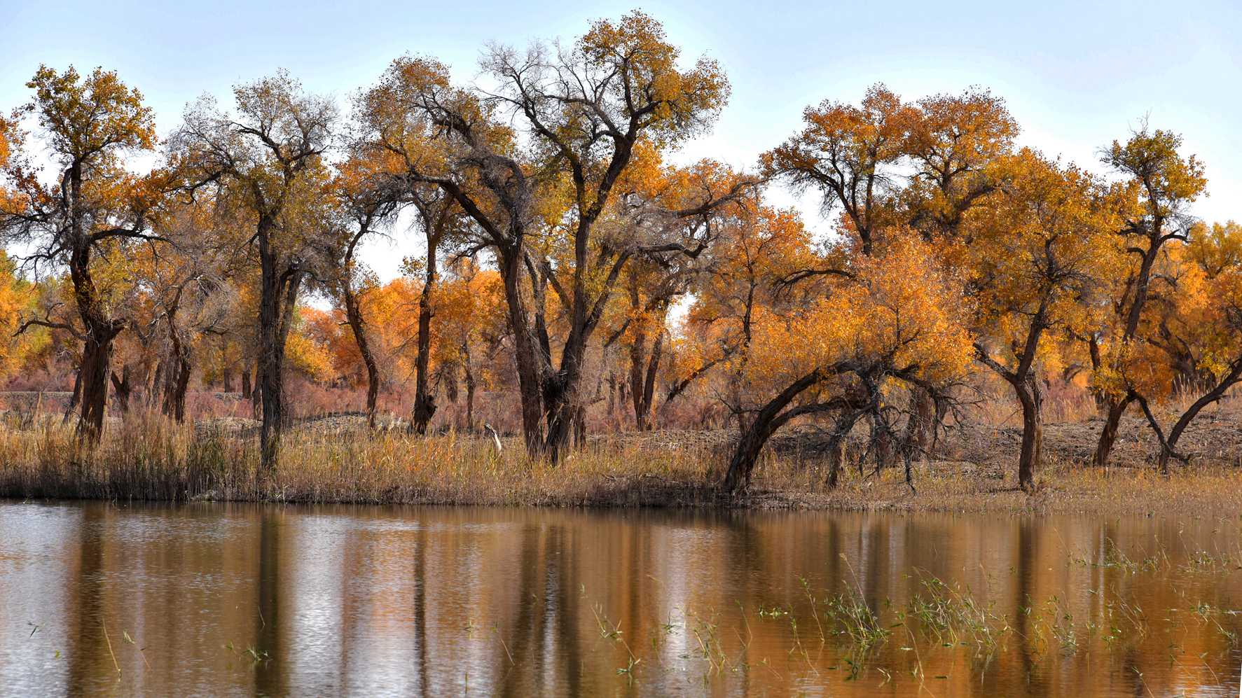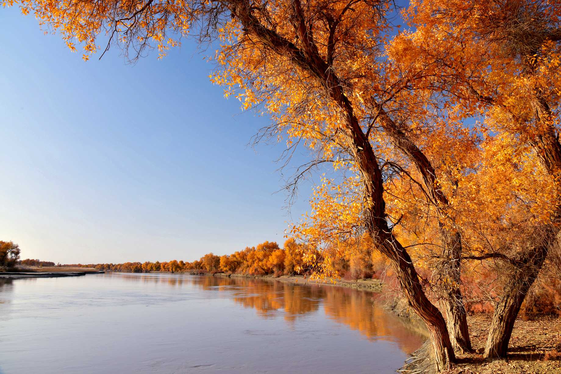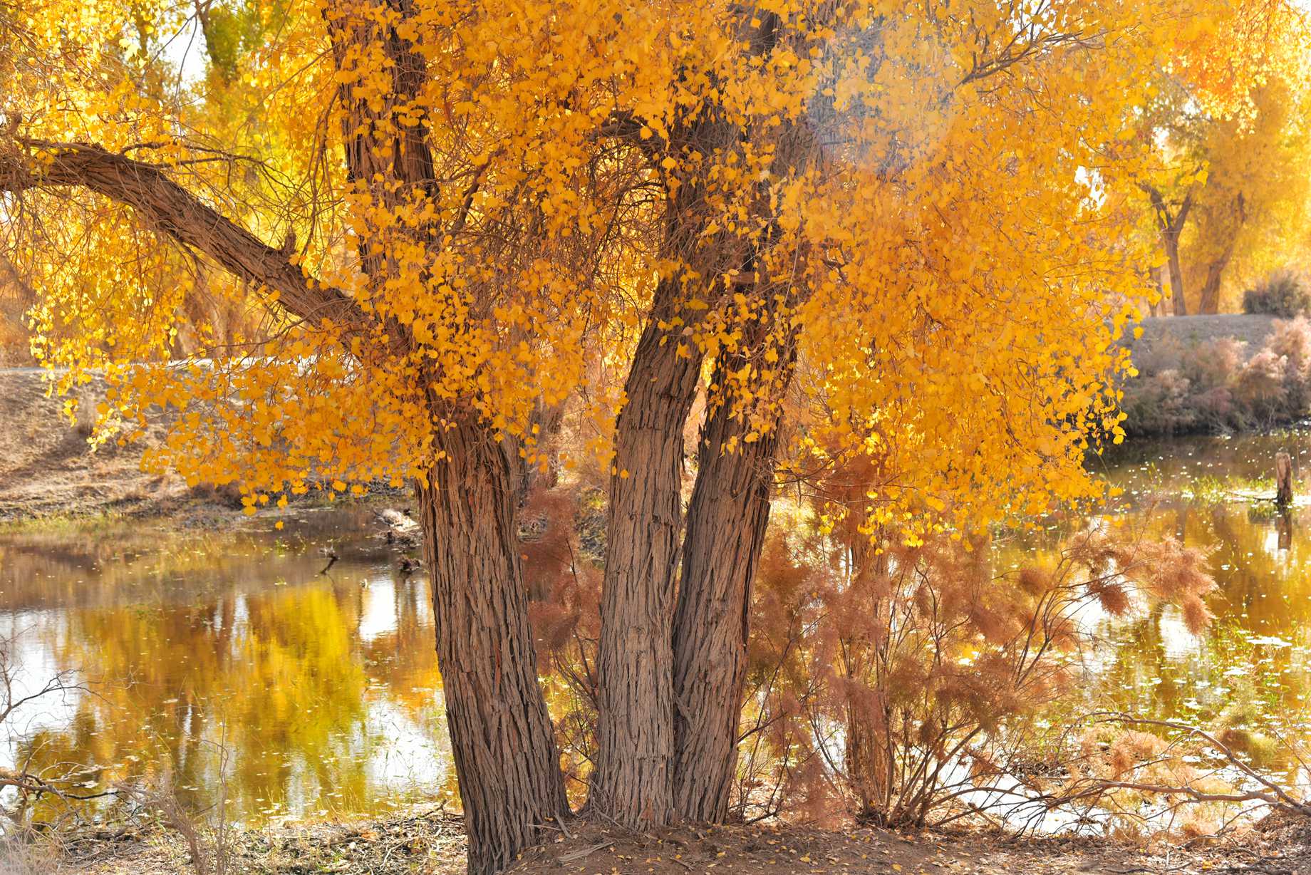 塔里木河流域的胡杨,不遗余力地彰显着妖娆。
