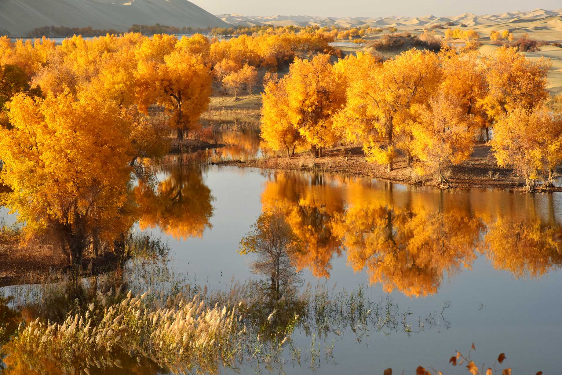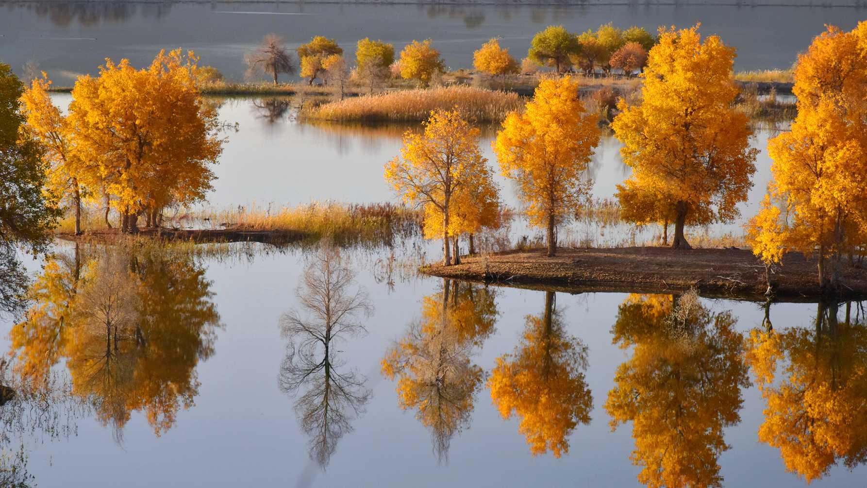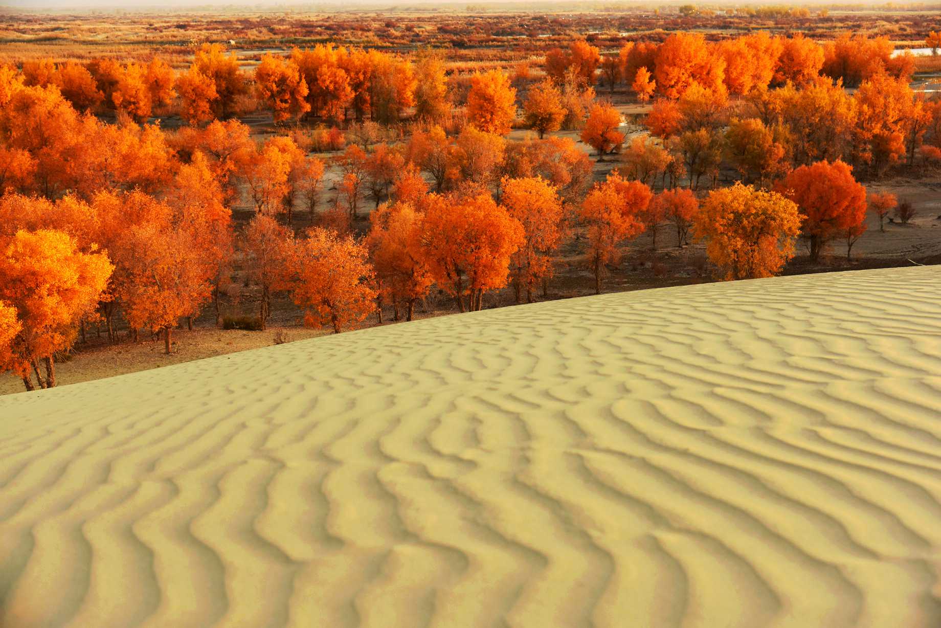 塔里木河流域的胡杨,不遗余力地彰显着妖娆。