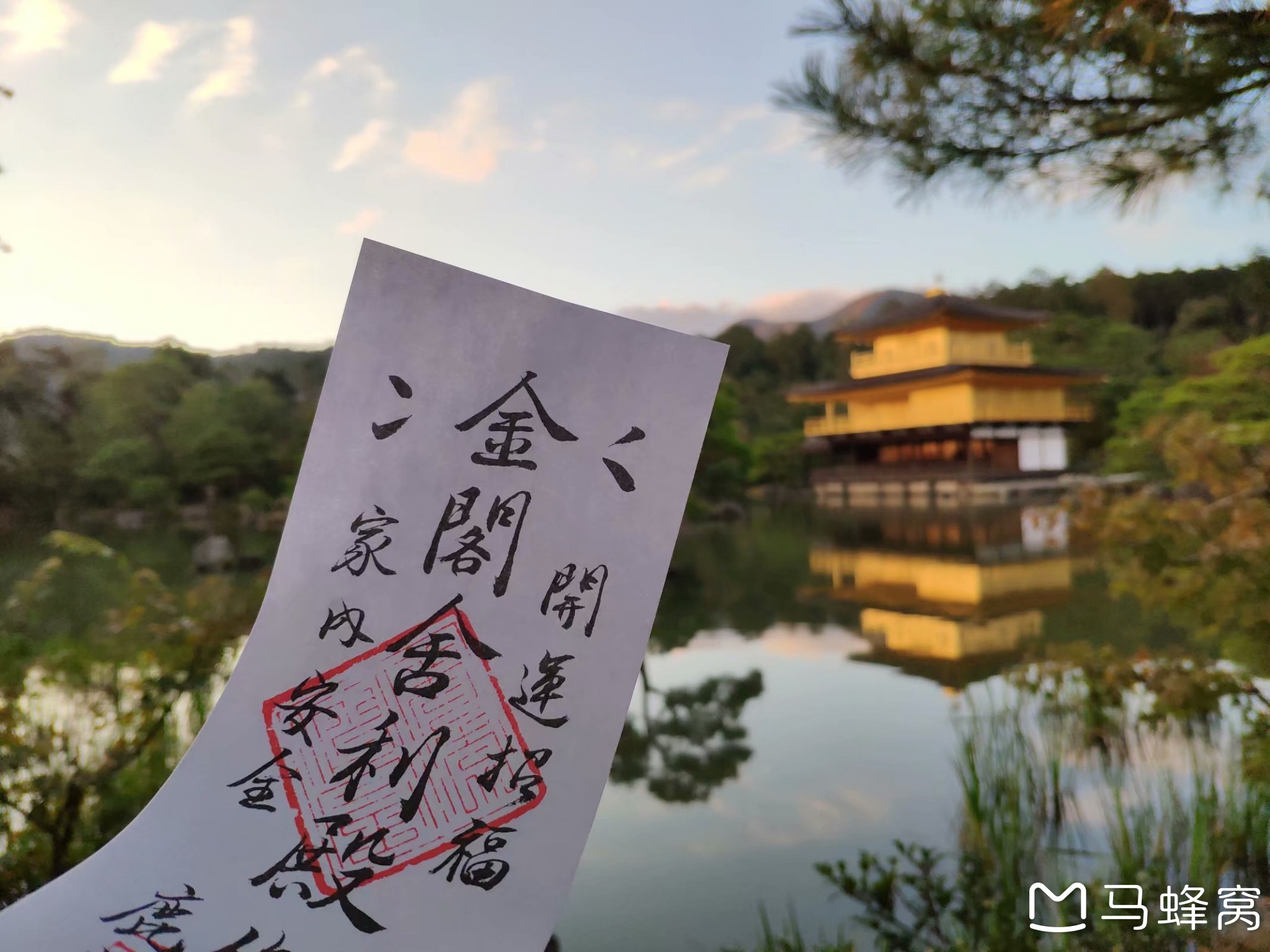 下午吃过拉面去金阁寺,建议下午黄昏去最好,会最漂亮。门票是它的特色,400日元。可以在门口先买个限量抹茶冰淇淋,因为谁也不知道出来的时候还能不能买到。