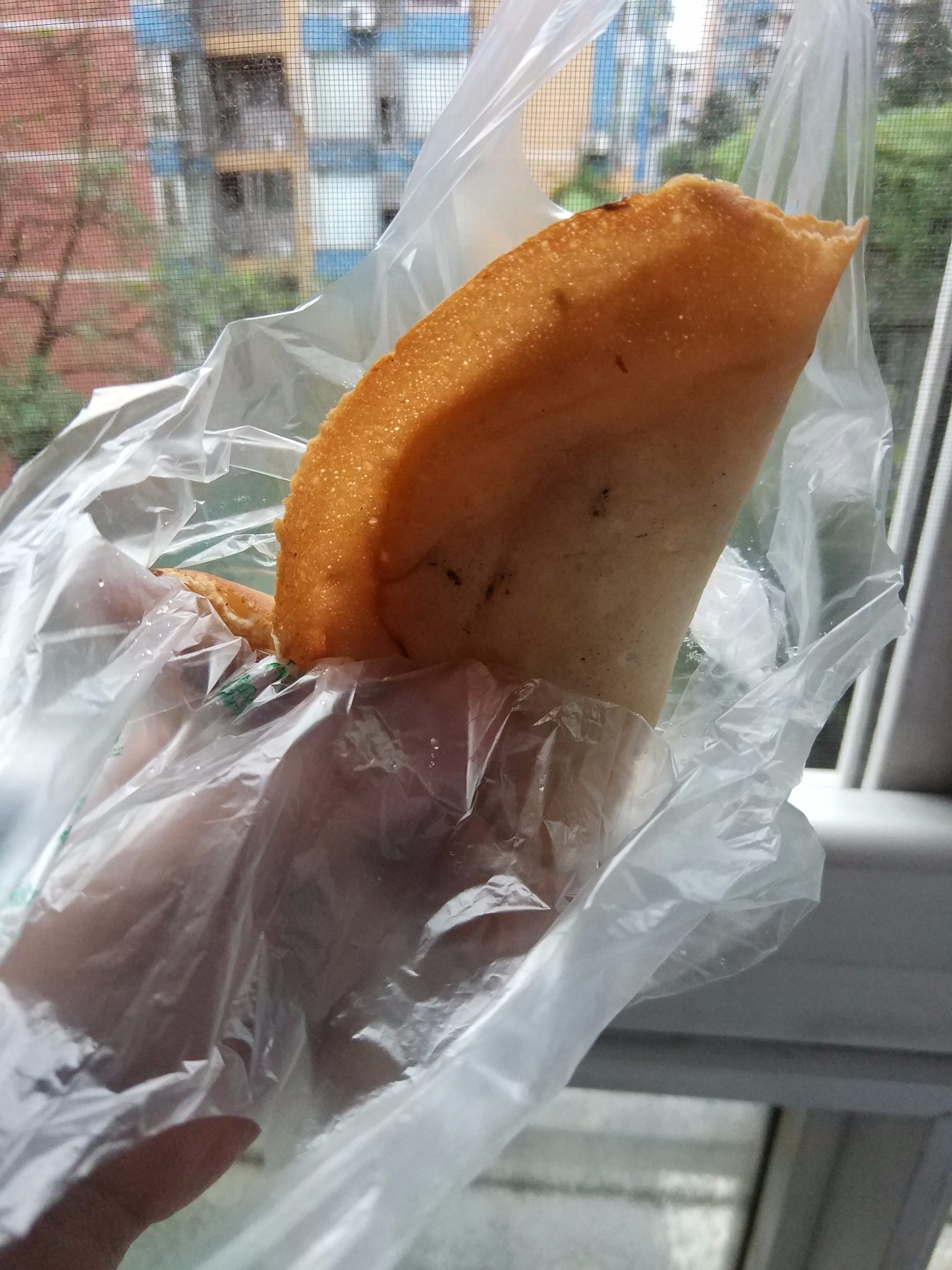 蛋烘糕之间就在网上看到很多人都推荐这个,本来是想去比较有名的贺记蛋烘糕,但是由于成都下大雨,而且和我同行的女孩也累了,本来是放弃了这次小吃的,但是没想到在民宿楼下看到有老奶奶推车在卖,直接买了两个,在问老奶奶多少钱的时候,老奶奶反复说了好几遍我俩才听清是5元两个,老奶奶还指了指玻璃上说,她其实是卖10元三个的,但是看我们是外地来的,就算我们5元两个。瞬间觉得好暖心啊,好慈祥的老奶奶。