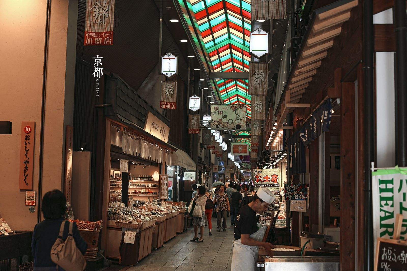 著名的【锦市场】也就在附近,作为吃货的我们必然不可能放过!锦市场是一条很窄的购物街,沿街有超过一百家的商家。这里有各式各样的新鲜及调理好的食物,还有许多京都特产,像是酱菜、日本甜点、干货、寿司;还有卖新鲜海产跟各式蔬菜。地址:京都府京都市中京区錦小路通。