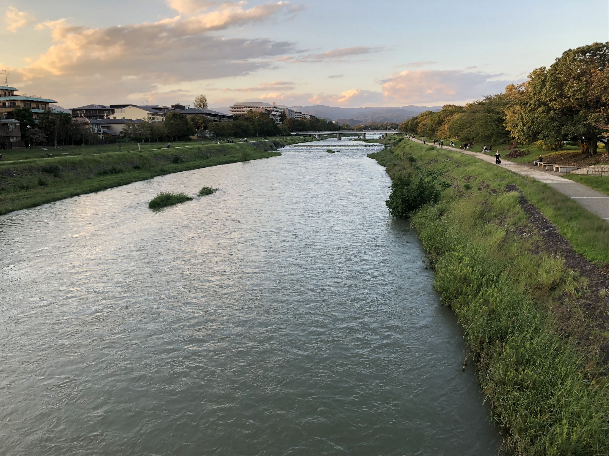 【京都商圈】由于今天只剩晚上时间,景点肯定去不了,我们就随便逛逛。民宿就在鸭川边上,我们便沿着鸭川一直往下走,傍晚时鸭川美的像一副画。鸭川是京都人最喜欢的地方,在3月的樱花季,河川两边的樱花都会盛开,那是鸭川一年中最漂亮的时刻,京都人会拖家带口地来到樱花树下野餐,享受这个美妙的时刻。