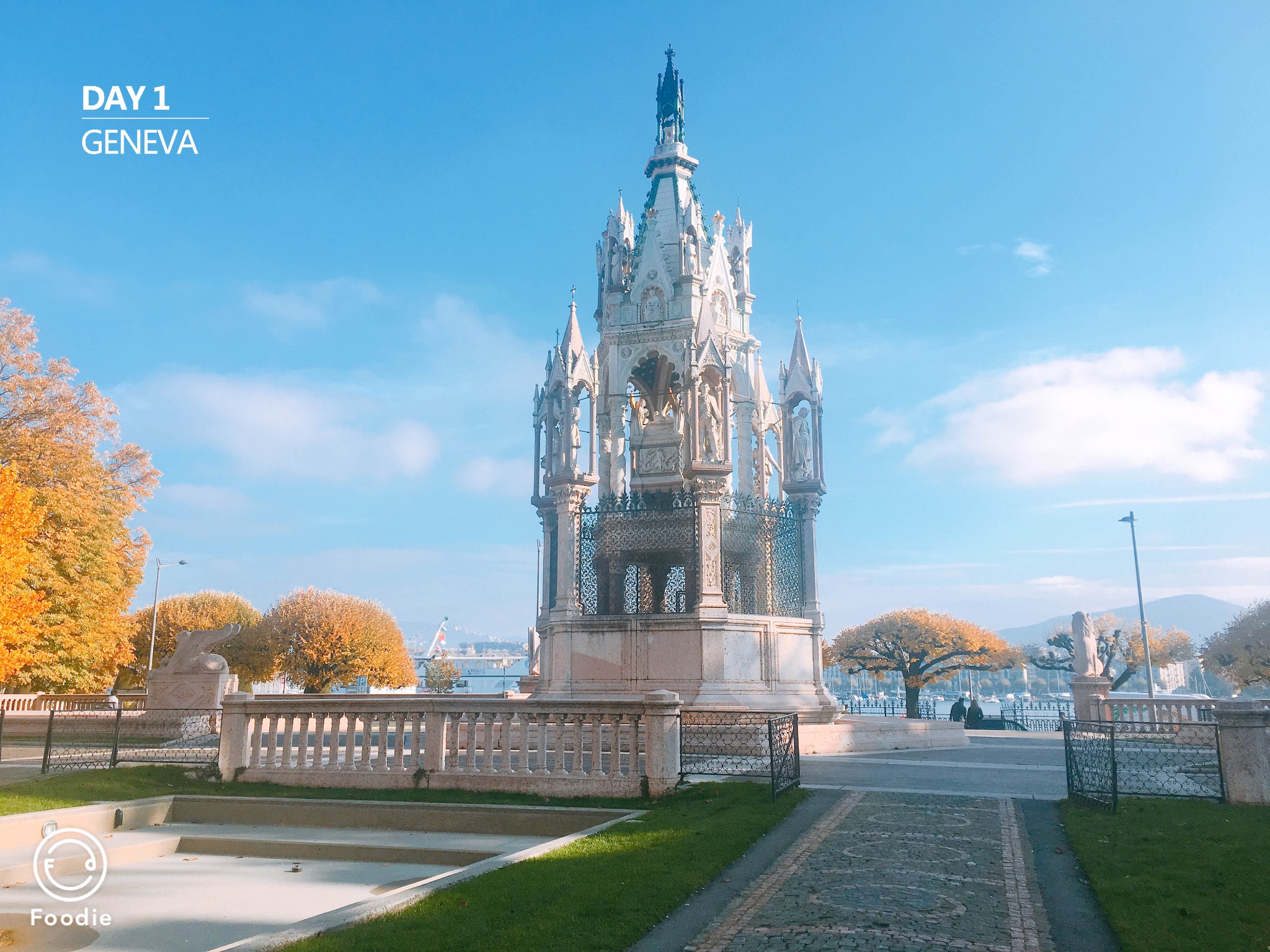 3)地图最右边的喷水柱(Jet d'eau)是日内瓦的地标之一,每年确实有养护时间。喷水柱左边不远处,有英国花园,花钟,国家纪念碑,3处景点是连在一起的。反正只要去旧城区都会经过这里,顺路去打个卡吧。