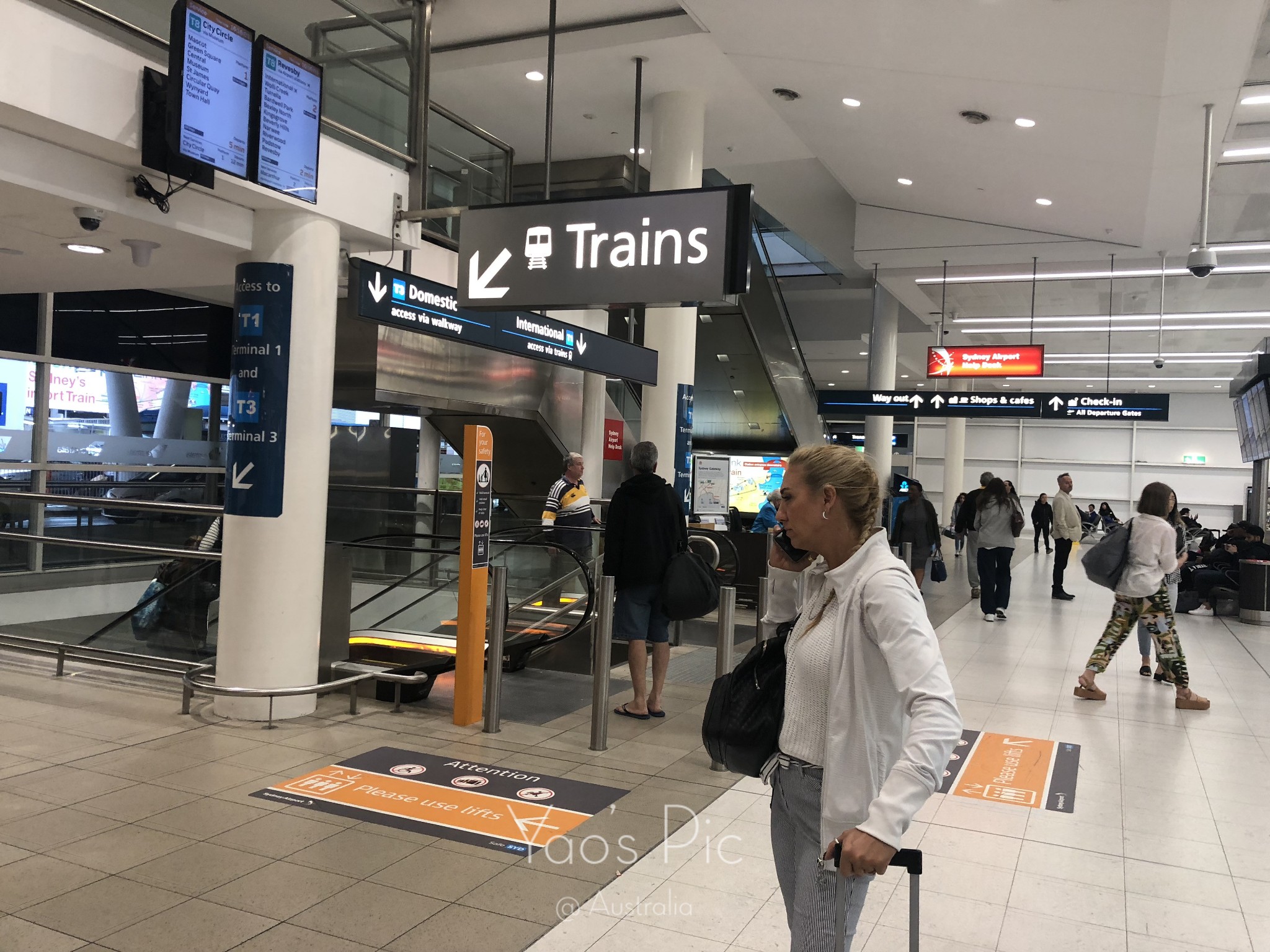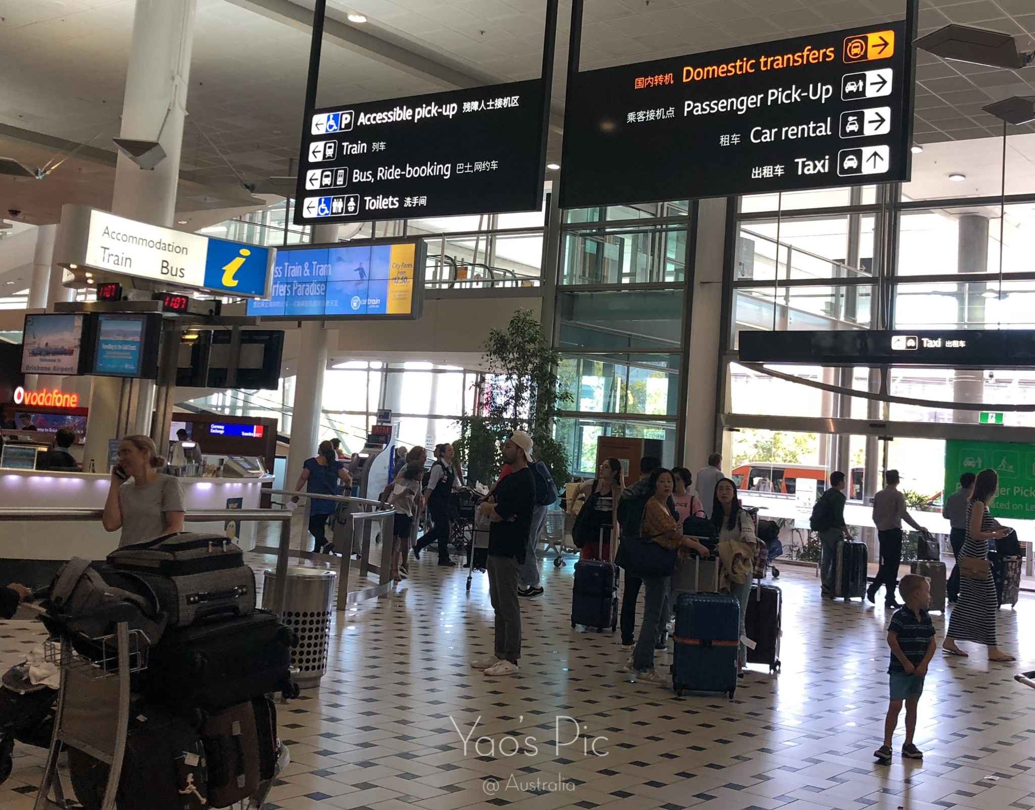 本来想黄金海岸安安分分住5晚的,可是因为悉尼有个好朋友在,所以不安分的心又骚动了,当天抵达布里斯本之候就直接转机去了悉尼。出了机场海关之后,直接抬头看看指示牌,那橙色的字体便是我们要去的地方,有中英文标识,是不是很方便?所以我觉得这里很适合自由行啊!