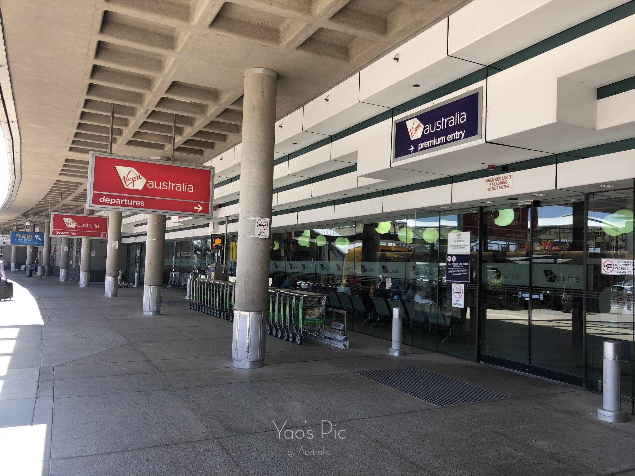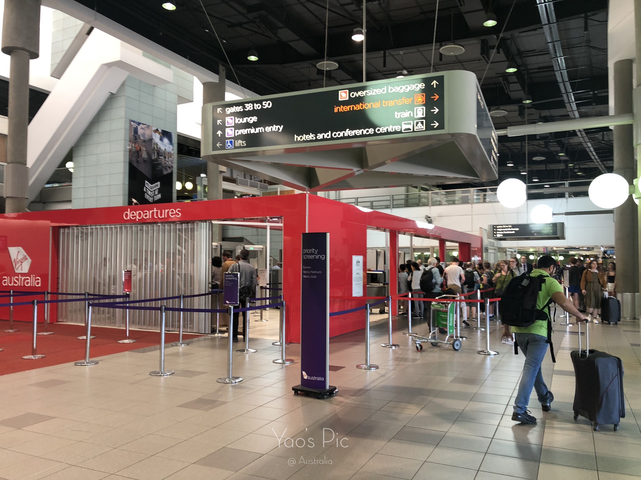 沿着橙色的字体走,走到底其实也是个柜台区域,有VA和QF,那我看到没什么人排队就顺手在这里办了去悉尼的值机并托运了。其实这里可以办理托运的,行李是由机场直接送去国内机场了,当然你也可以等到了国内航站楼再去办理自助或者人工值机托运等。