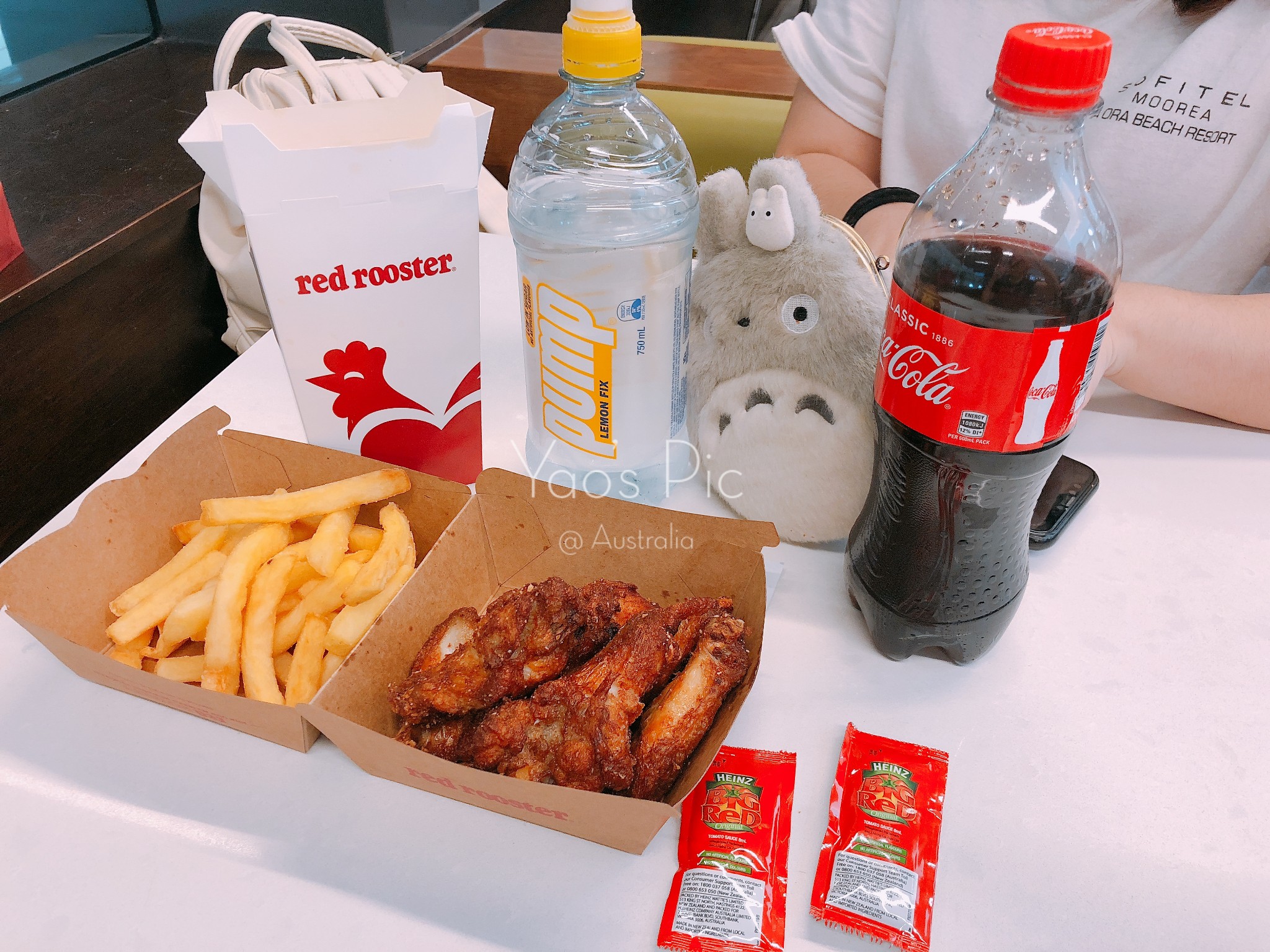 过了安检当然要吃吃吃吃吃啦!国际航班上早餐吃完也没多久,那我们就在Red Rooster点了鸡翅和薯条解解馋。姐妹俩喝可乐的肯定是大Y,所以胖的也是大Y我。印象深刻的是,我点了薯条,没有主动给我番茄酱,那我就过去问他们要“ketchup”,谁知道服务员是个老太太,边给我番茄酱,边教育我“tomato sauce”。哈哈哈哈,入乡要随俗哟!