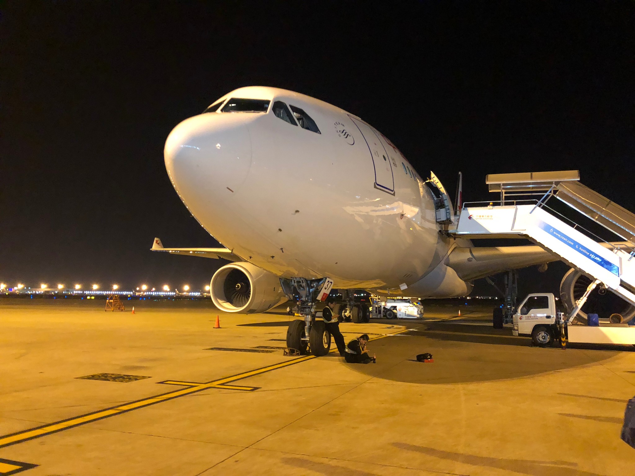经过一夜10个多小时的飞行,哦哈哟~~Yy姐妹俩~~~飞机着陆后留念...