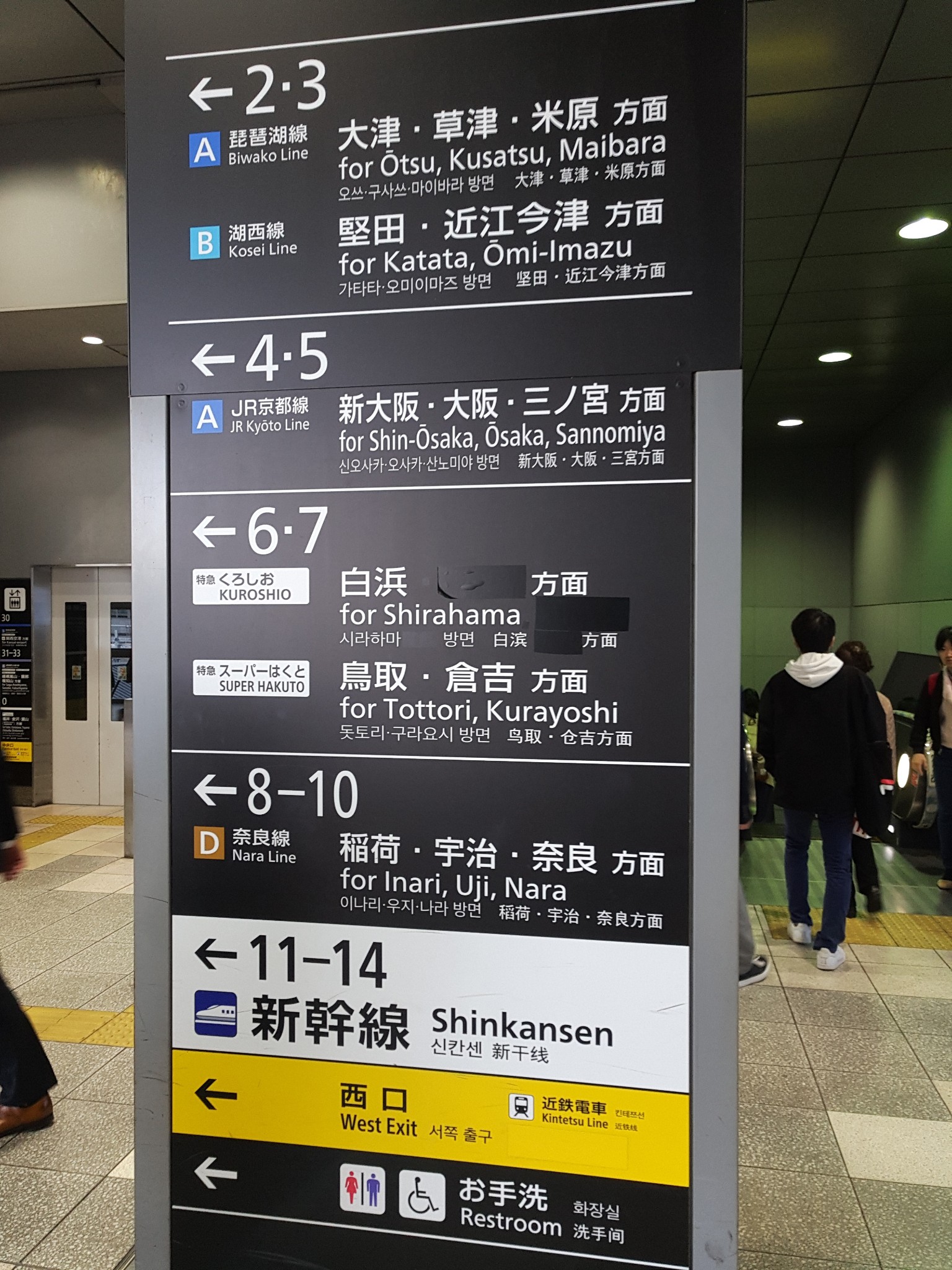 接下来就是从关西机场到大阪了,网上的攻略大多都是推荐乘Haruca直达,要提前买票之类的,但你只有到了那里才会知道日本的铁路系统有多么的复杂,找到具体的Haruca换乘处,对于初到日本的人几乎是个不可能的任务,这里乱入一张JR京都站的导览图,各位可以体会一下