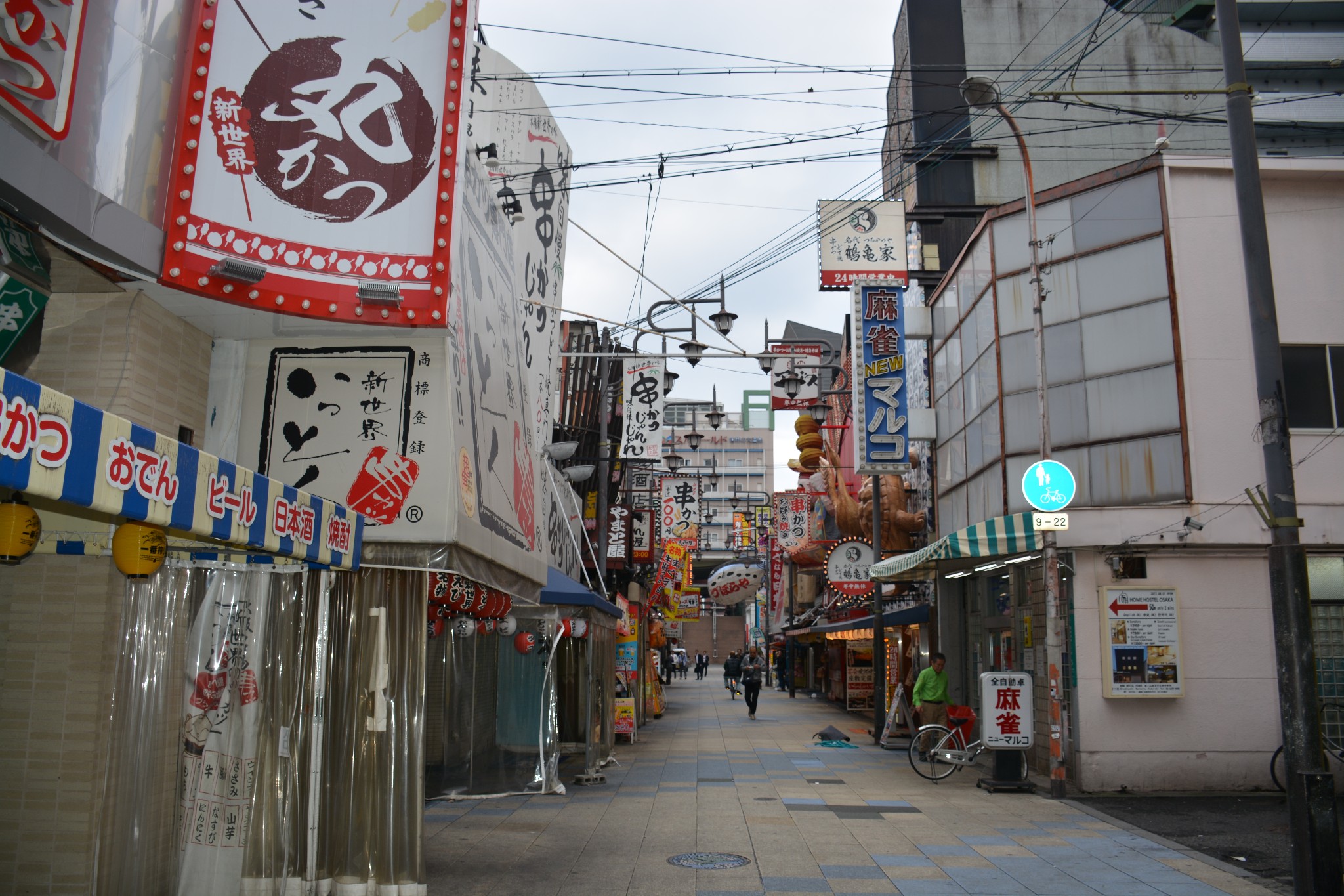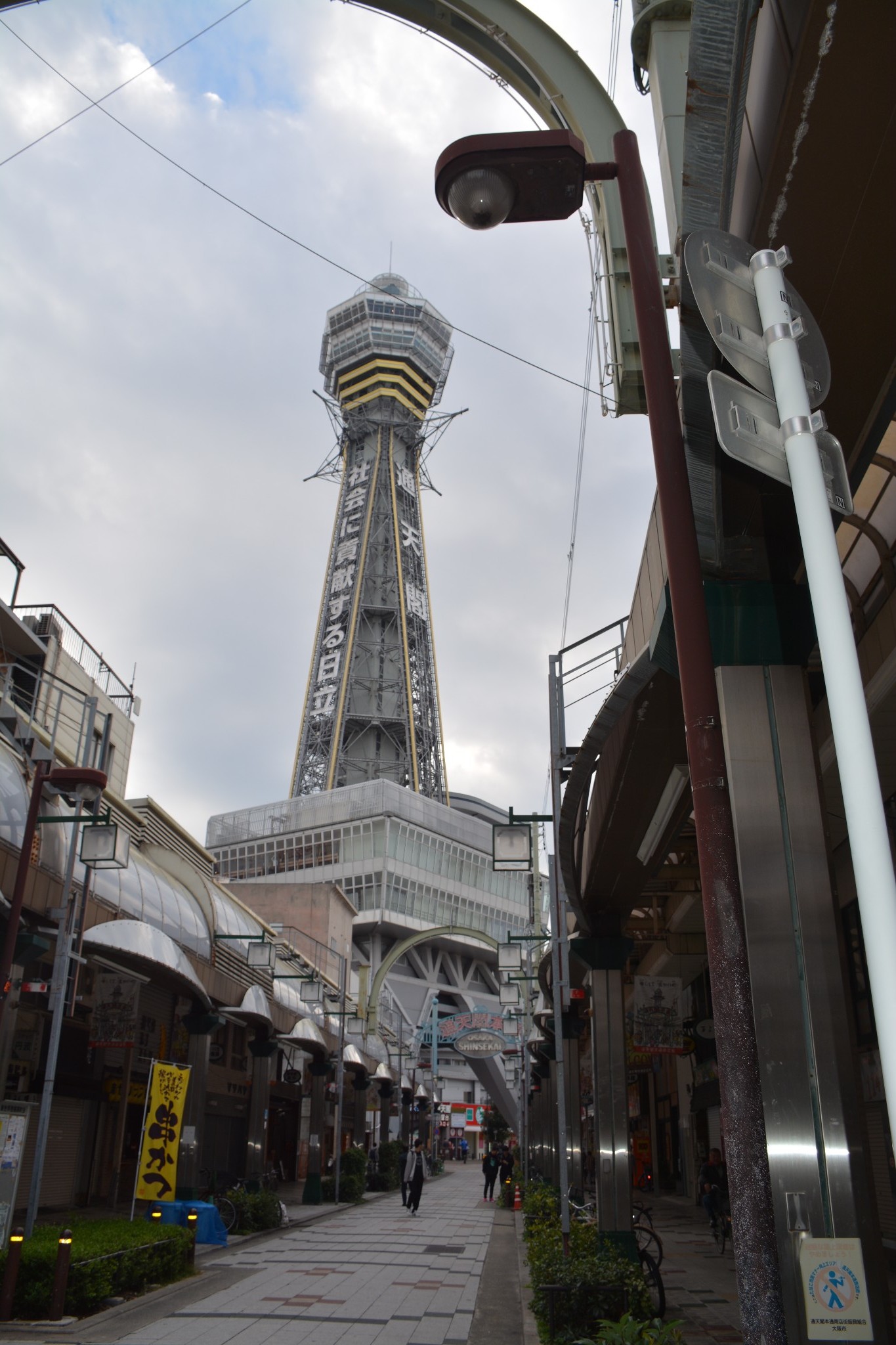 早上先去的是大阪通天阁,曾经的亚洲第一高楼,模仿的是埃菲尔铁塔和凯旋门,现在看上去其实就一座很矮的小塔。由于我到的时候还没到九点开门时间,所以在旁边的街道上也转了一下,非常冷清,空无一人,貌似与我们印象中繁华的日本有着很大的出入。