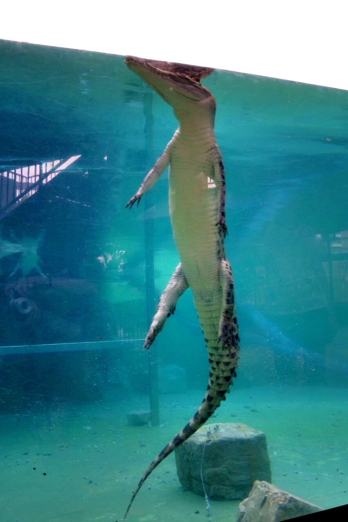 顶层实在太热,到下层来吹吹空调,拍拍鳄鱼。