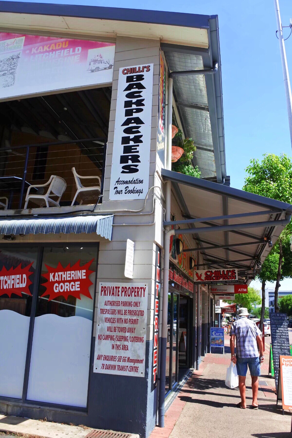 酒店楼下的这条街上有好多Backpackers的小旅馆,他(她)们以达尔文为根据地,从这里开始去到乌鲁鲁啊~卡卡杜国家公园啊等这些不毛之地的世界遗产。