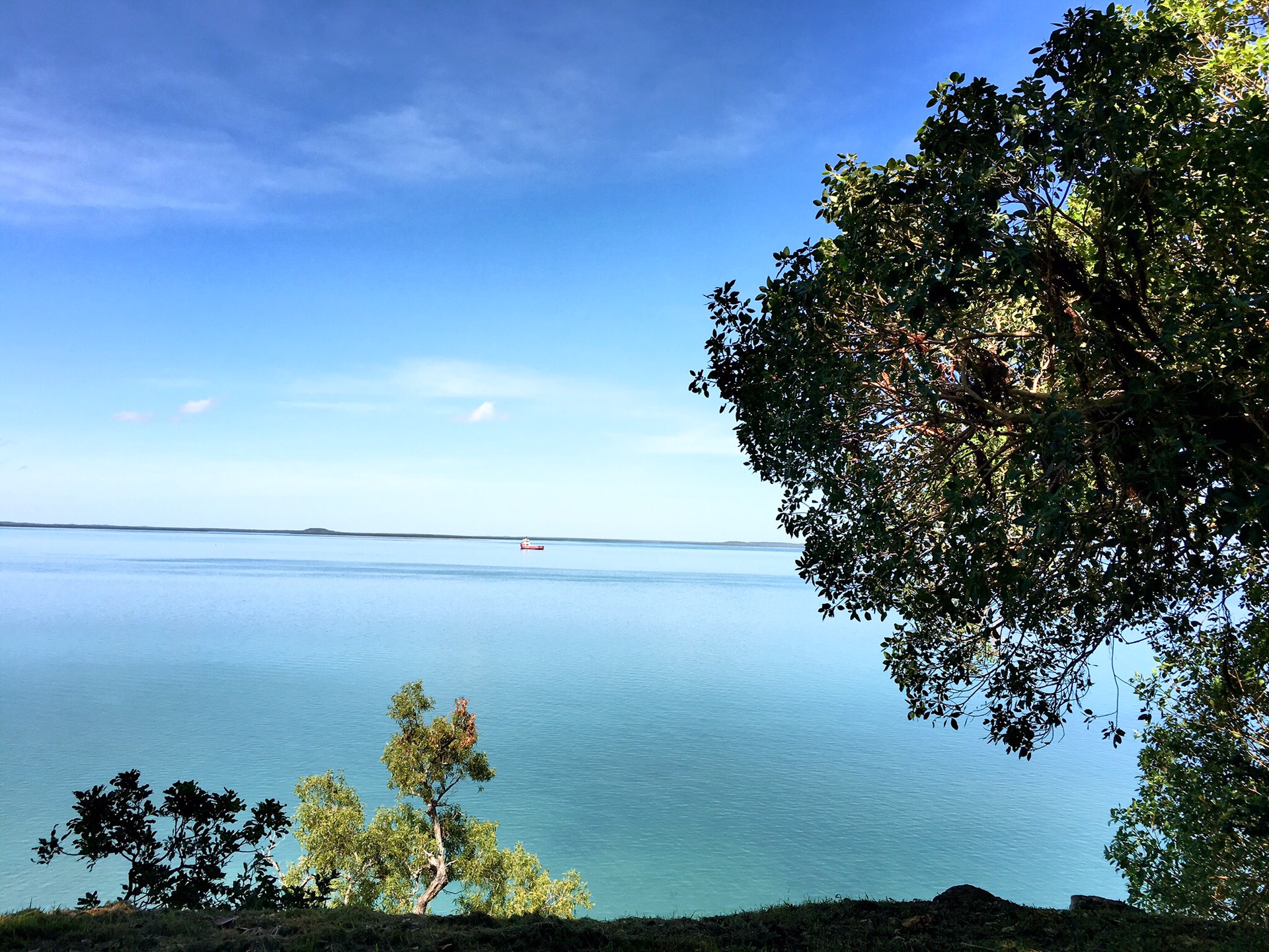 酒店徒步走出不远就是林荫小路,沿着小路走到尽头就是帝汶海了。作为一个港口城市,达尔文却有点斯文。炽热却寂静、悠然中隐藏着海运的繁忙。当然,作为一名游客,完全感受不出繁忙。