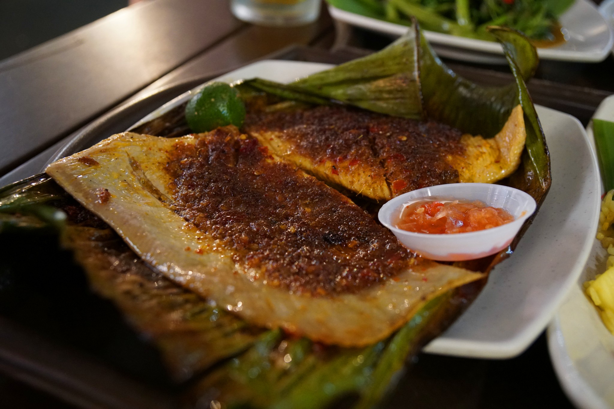 方鱼算是新加坡这边的常见水产~~如果查度娘呢,会得出方鱼就是魔鬼鱼,学名蝠鲼。但说实话,我觉得不完全是一个品种啦,毕竟很多潜水照片里蝠鲼都挺巨大的……哈哈,不管怎么说这个吃起来有点像塔嘛鱼(偏口儿)。鱼肉很细嫩,也没有乱七八糟的刺儿,烤的酱料有点像沙茶,但更甜一些。其实最棒的是他家小塑料碟里的甜酸洋葱丝(希望我没弄错),还带点微辣,解腻开胃!!
