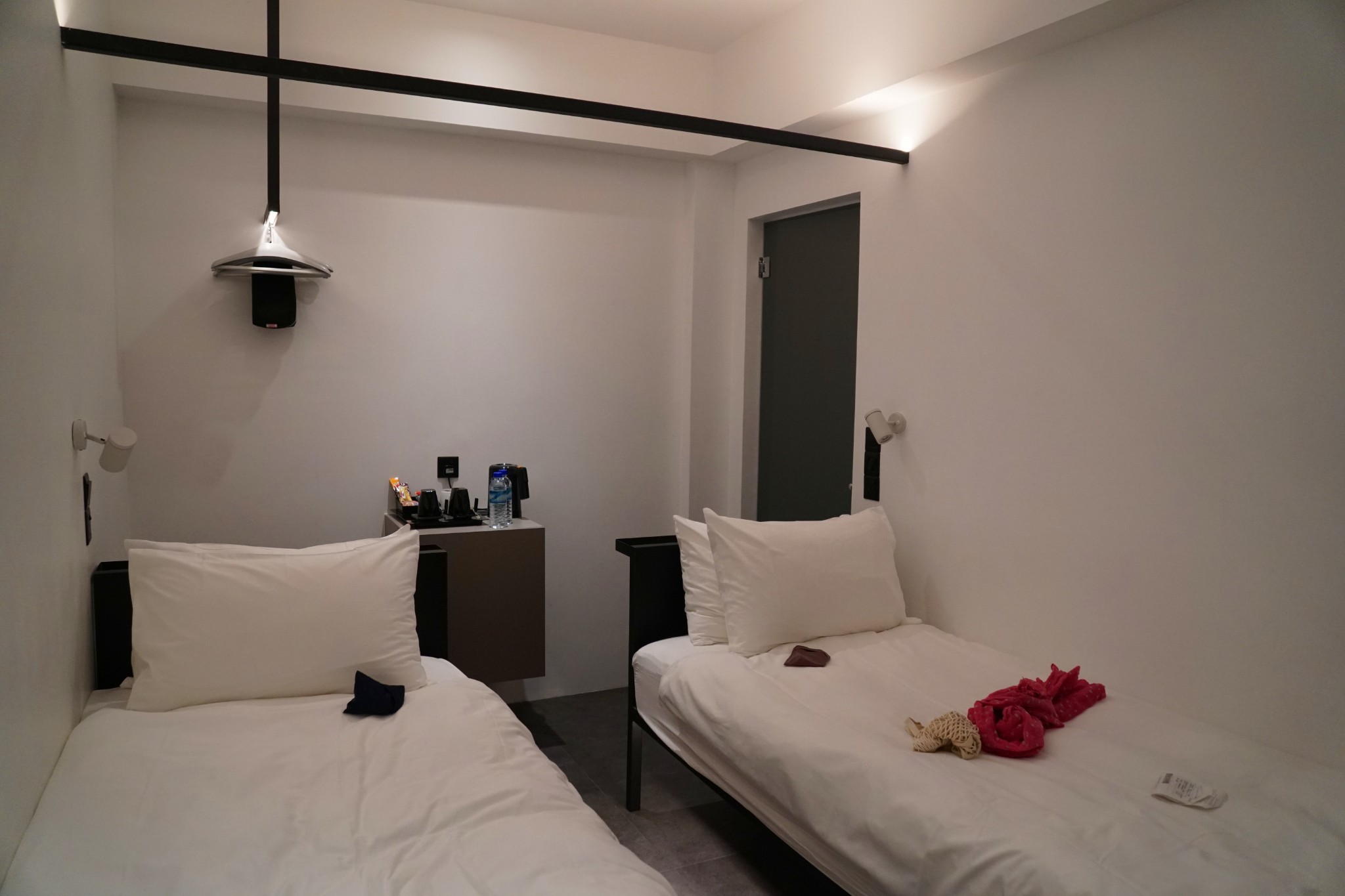 )。小红书上一个博主正好Po了这家酒店,看照片着实不错。结果人家住的应该是比较贵的房间啦,我们预定的最普通的标间实在很一般。但二狗说鉴于位置真的不错,且使用还算方便也可以忍。