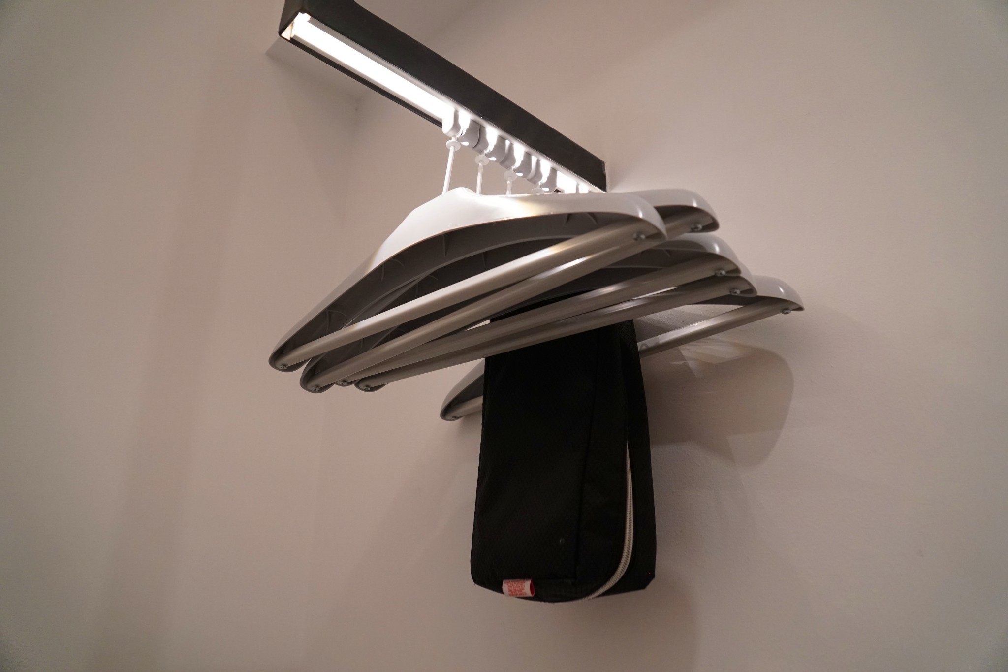 从床的位置看门口,整个房间除了两张床,想要摊开一个28寸行李箱就全靠动手能力了。