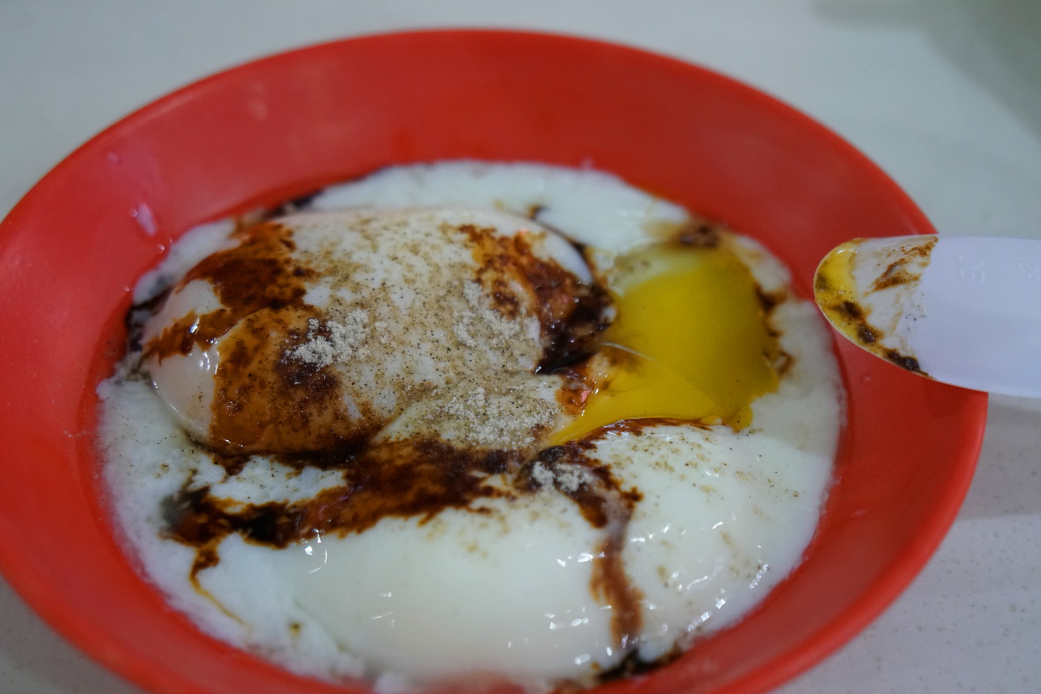 一盘两只3成熟的滑嫩鸡蛋,加入胡椒粉和酱油,把两只蛋充分搅散与酱料混合,就这样吃也已经很美味了,不知道是不是胡椒粉的缘故,完全不会有蛋腥味儿~~
