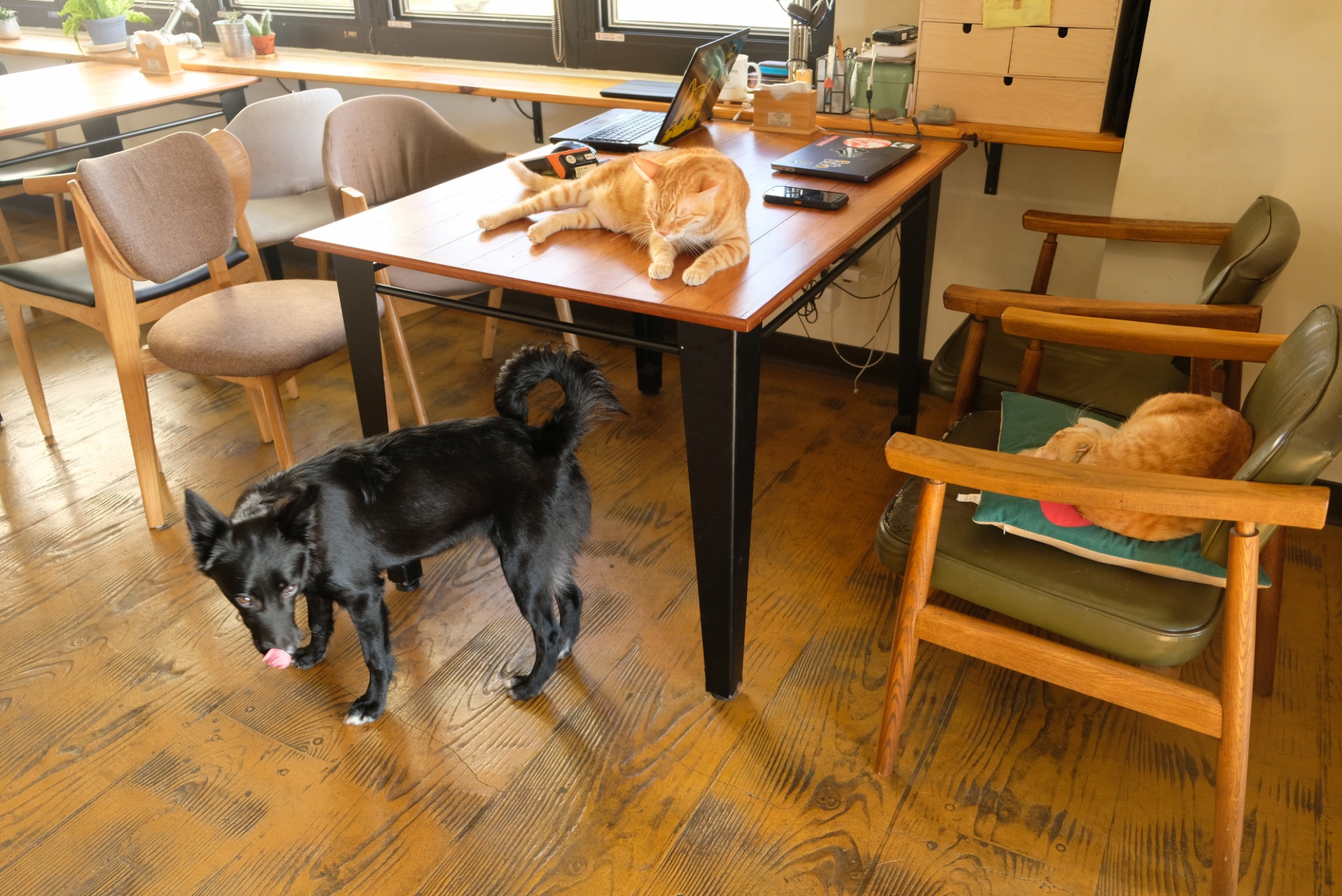 民宿里面有两只猫两只狗,看着它们就觉得好治愈了。