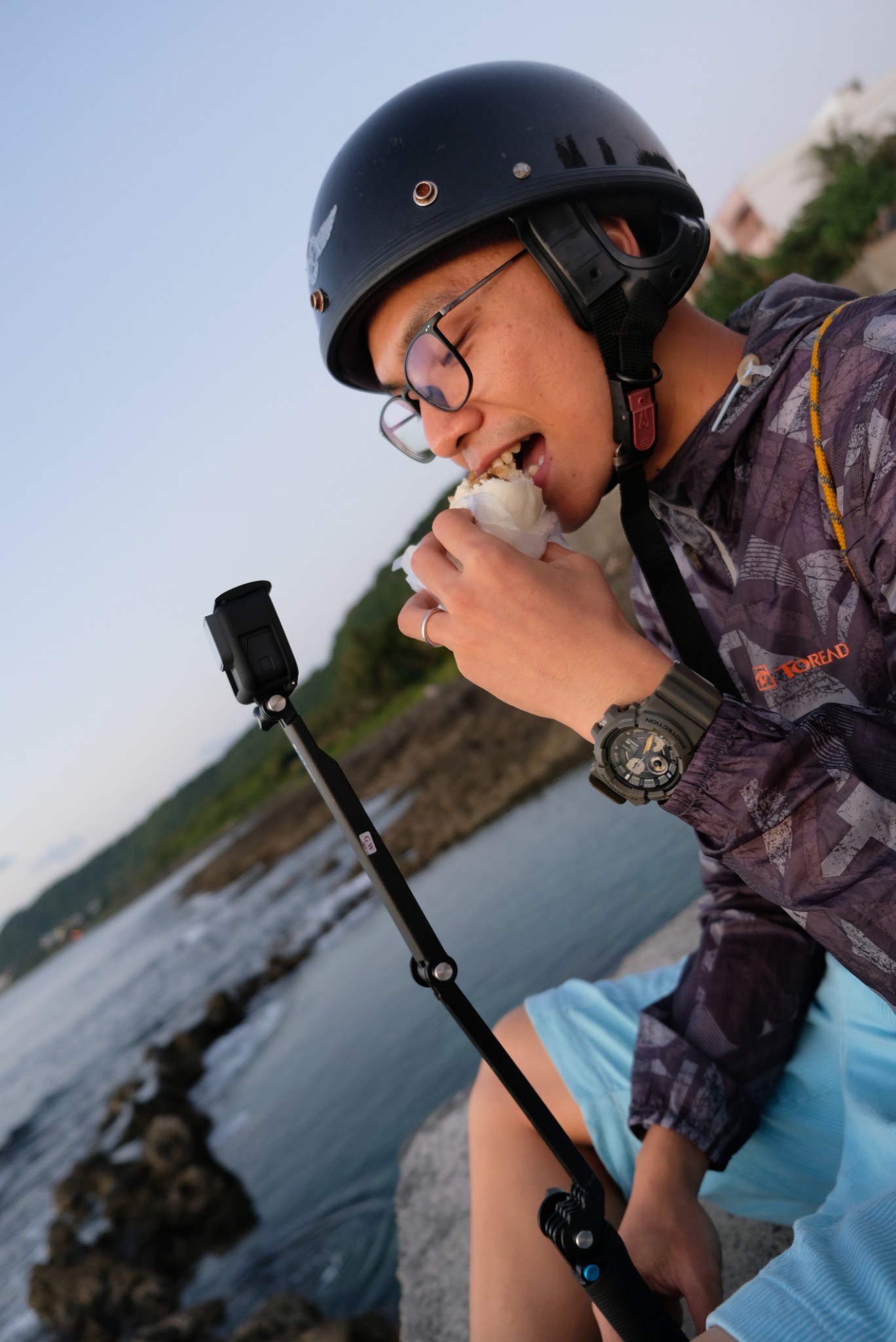 然后骑车去了红柴坑看日落(本来想去关山的,不过民宿老板说关山来不及了,而且要上山,电动车是上不了,要推的,所以推荐了去红柴坑,虽然还是晚了,但坐在海边吃包子,还是很爽的!)