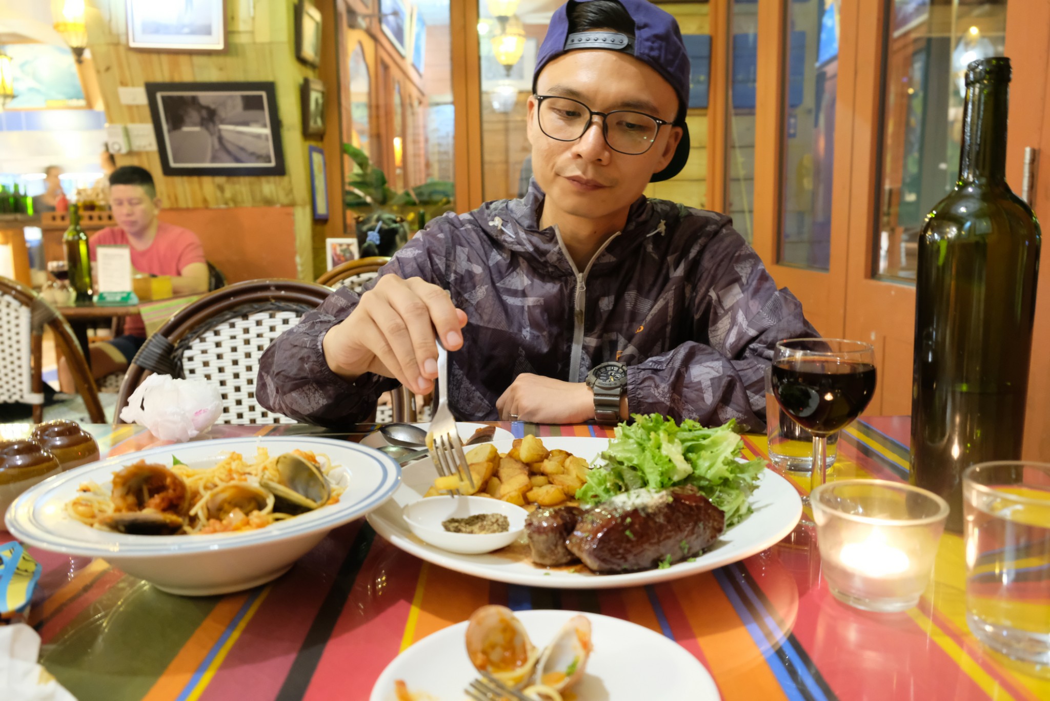 天黑后赶去同事介绍的Bossa Nova,好多境外人光顾,分量很足,超级好味!吃牛扒还送了一杯红酒!听说甜品也很好,但真的吃不下了!!!