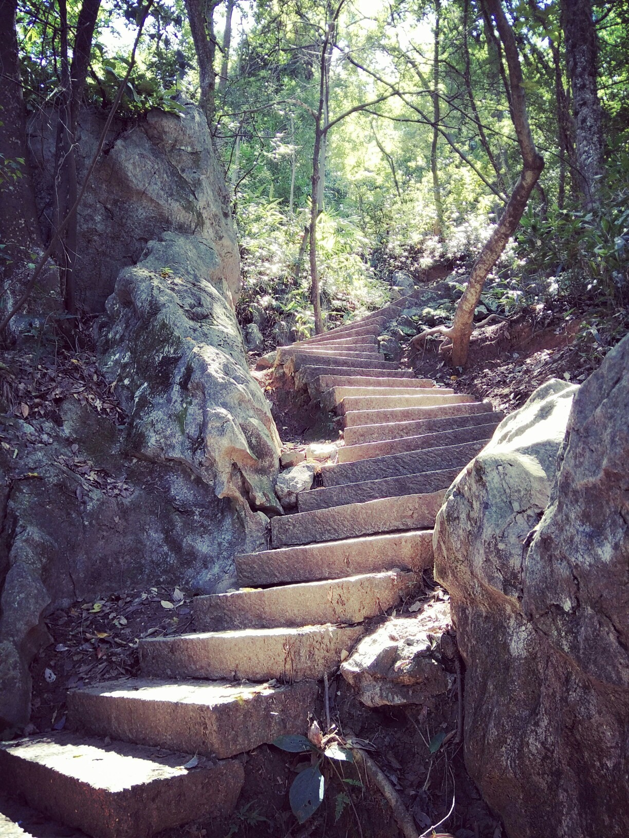 对寺庙执念不深,走走看看就出来了,回到临近入口处(也是出口),突然发现登飞来峰的小山路,兴致勃勃的拽着我哥就去爬山了。