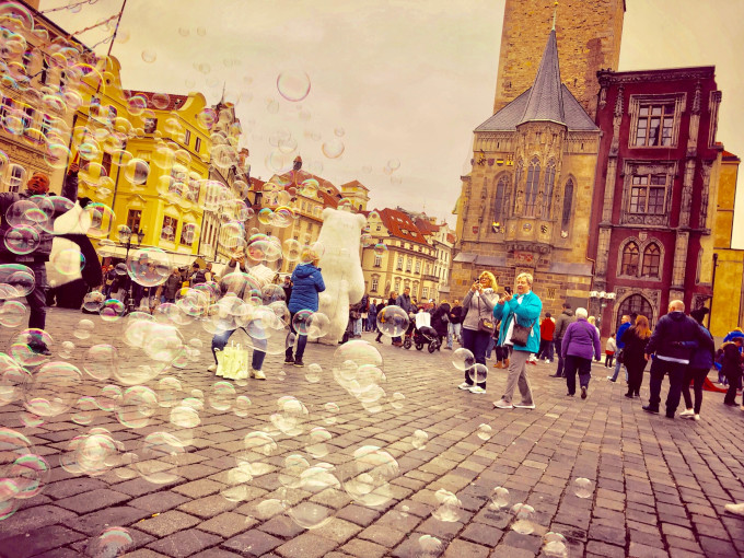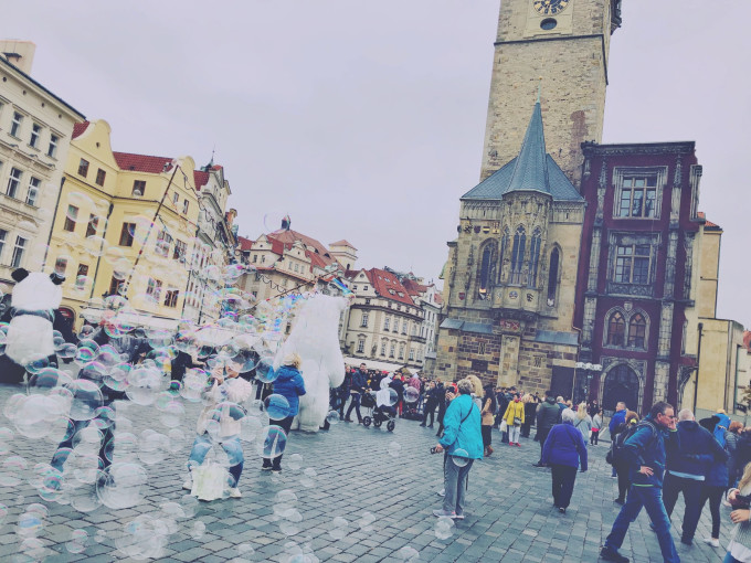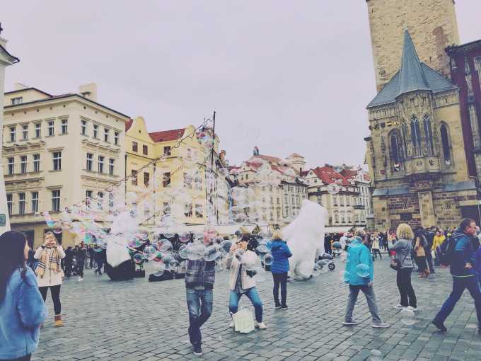 有广场就不缺泡泡,布拉格的石板路是遍及全城的,所以拉杆箱的小朋友们真的是会旋风哭泣。