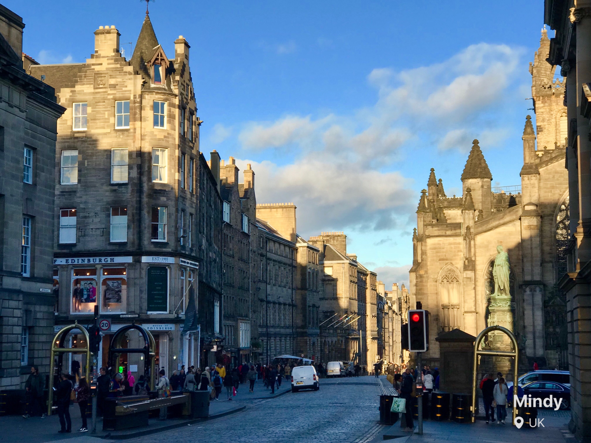 然后兴步走到旧城的皇家一英里Royal Mile。皇家一英里是爱丁堡最著名的大道,始于爱丁堡城堡,终于荷里路德宫,爱丁堡最有名的建筑几乎汇集在这条街上。晌午时分,慢悠悠地走在古旧的城市里,左顾右盼,时光似乎都回到了几个世纪以前。