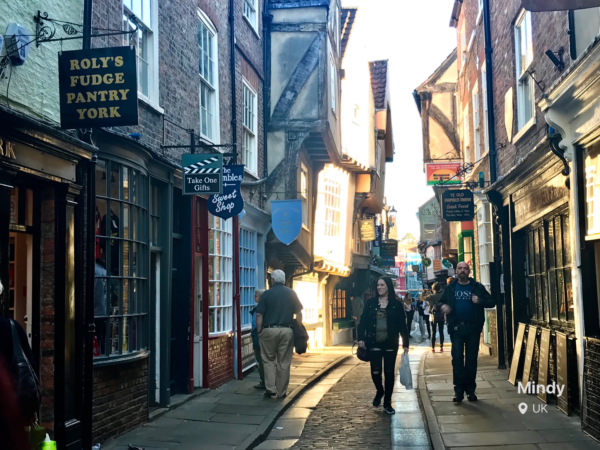 肉铺街The Shambles,哈利波特电影中的对角巷,是英国迄今为止保存最完好最古老的中世纪街道。走在街上,真的满满都是电影里的感觉,神奇、魔法、各种欣喜。