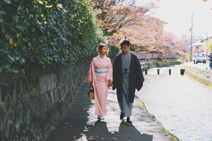 我们选的这家叫做“不染川”,在京都有工作室,我们的和服和妆容都是跟他们订的。非常方便。