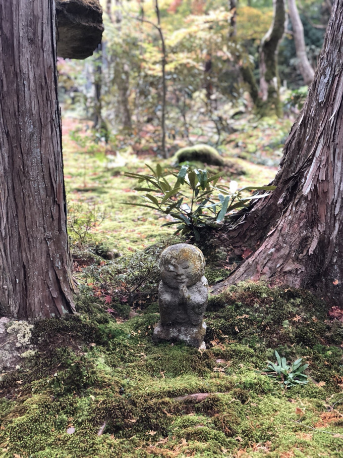 最可爱的是散落何处的小和尚石雕。头上长满青苔,十分可爱。