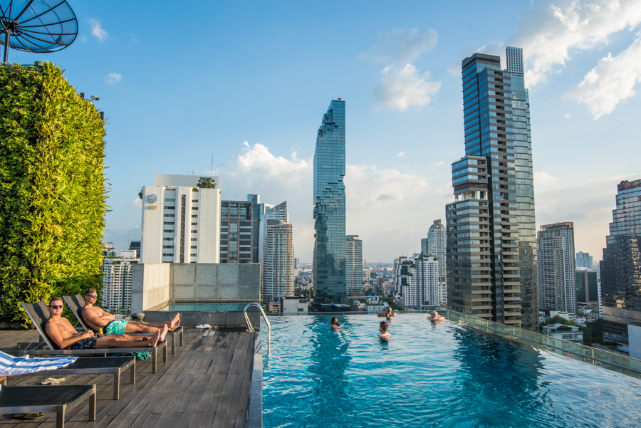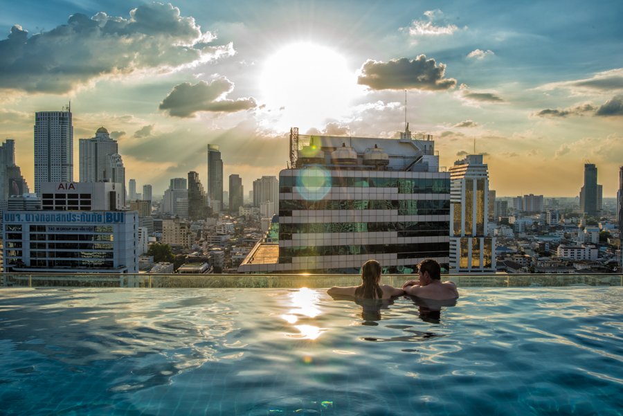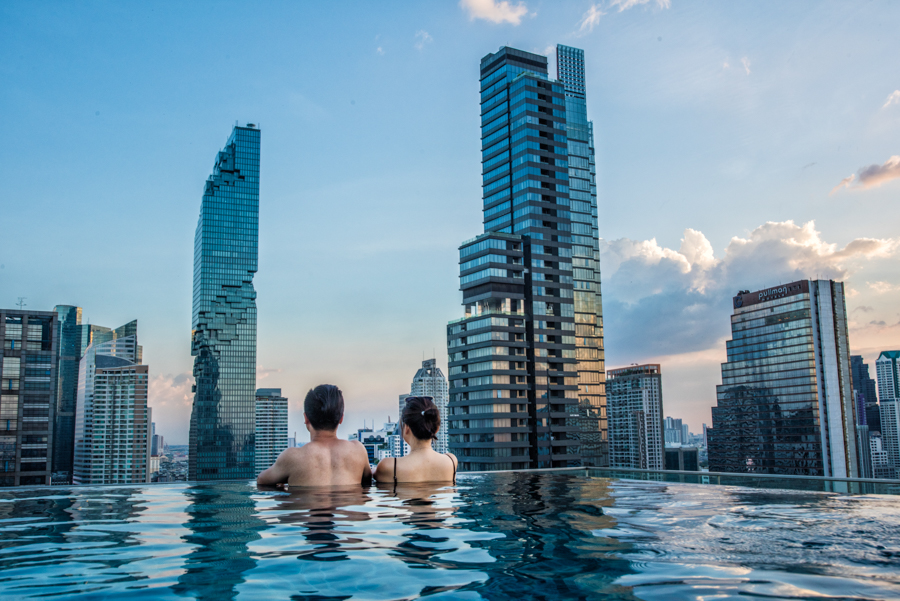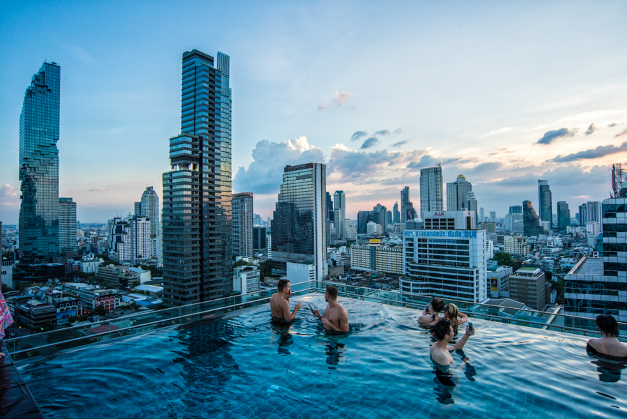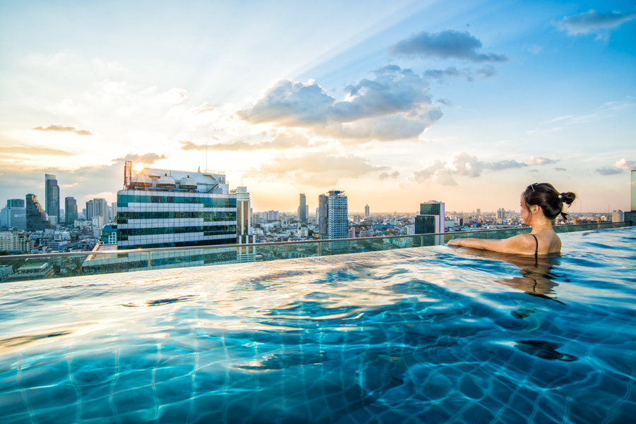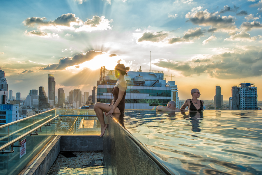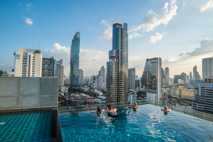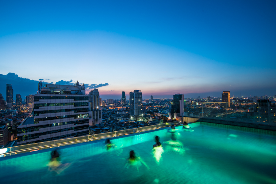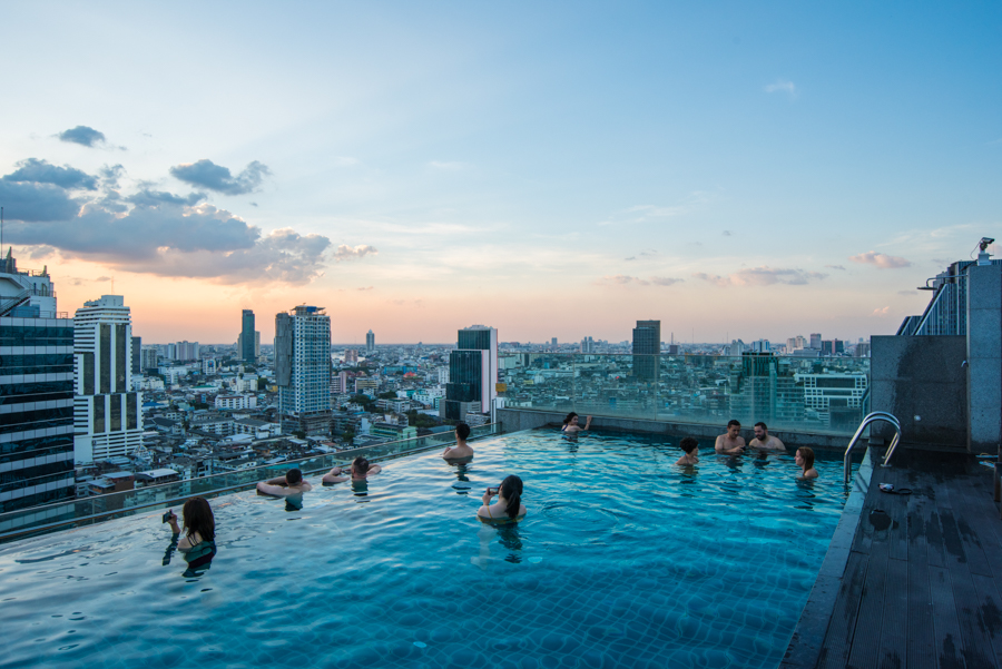 不得不说酒店最具吸引力的天台无边泳池啦,住客大部分境外游客,他们才是真正在这里享受游泳的乐趣,而我们大部份国人都是冲着拍照打卡去滴,哈哈境界不同。看着曼谷灯红酒绿车水马龙的夜景,在天台的吧台小酌一杯,绝对是完美的。