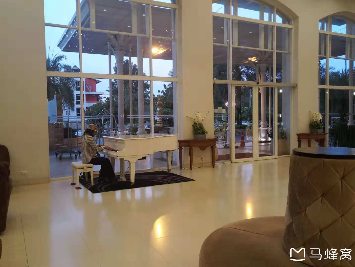 房间露台,很大,偶尔晚上在外边吃水果(真的没有吃榴莲)