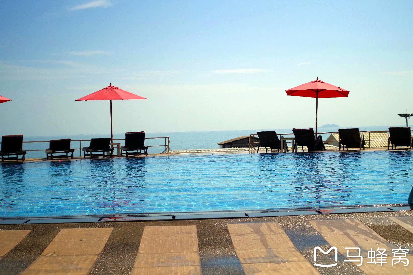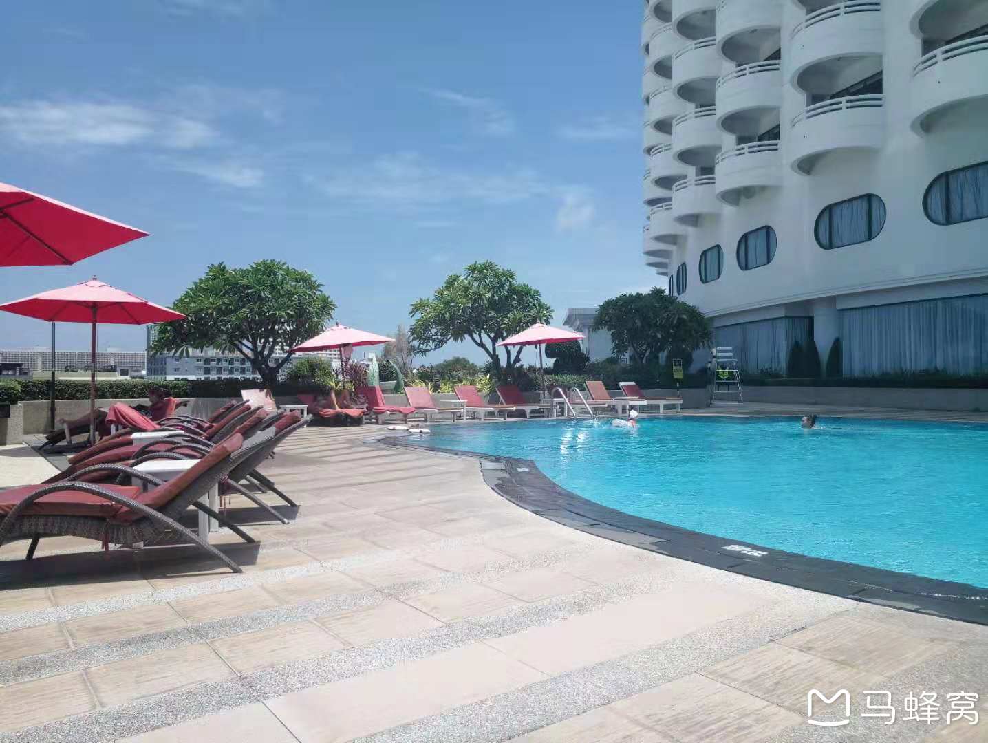 酒店五楼的泳池,有种无边泳池的感觉。(有浅水区,深水区,儿童游泳区)
