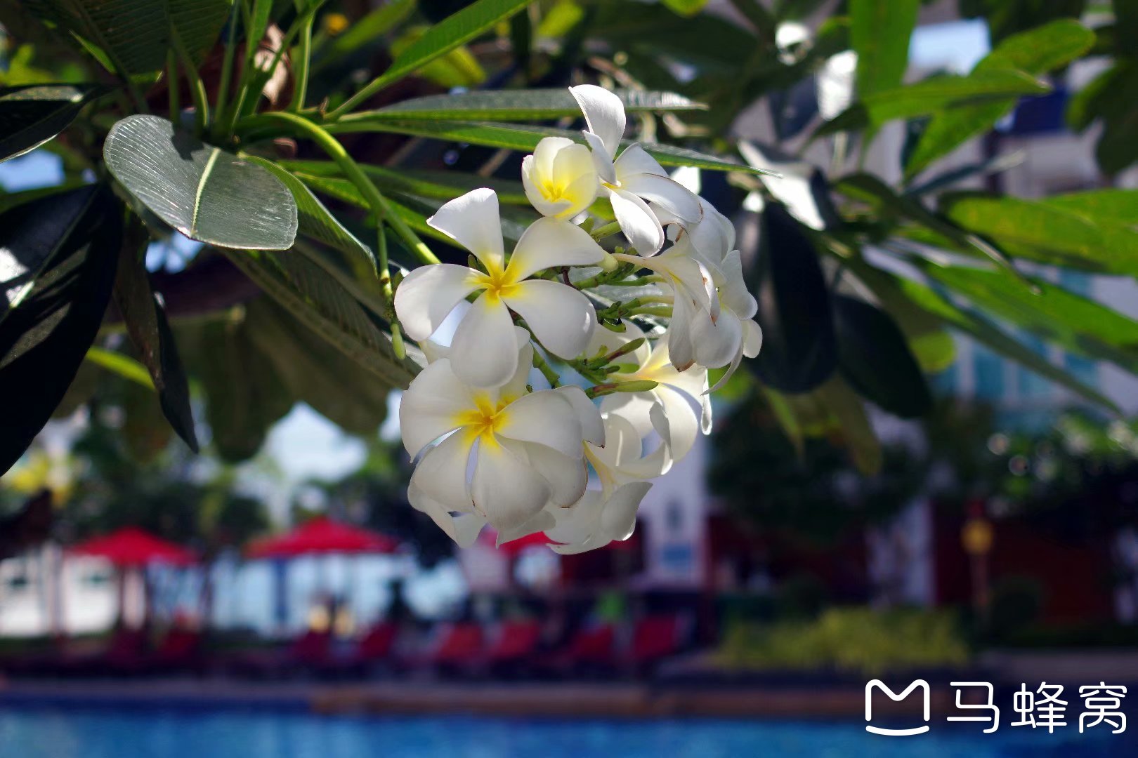 五楼的泳池躺椅上看到的风景