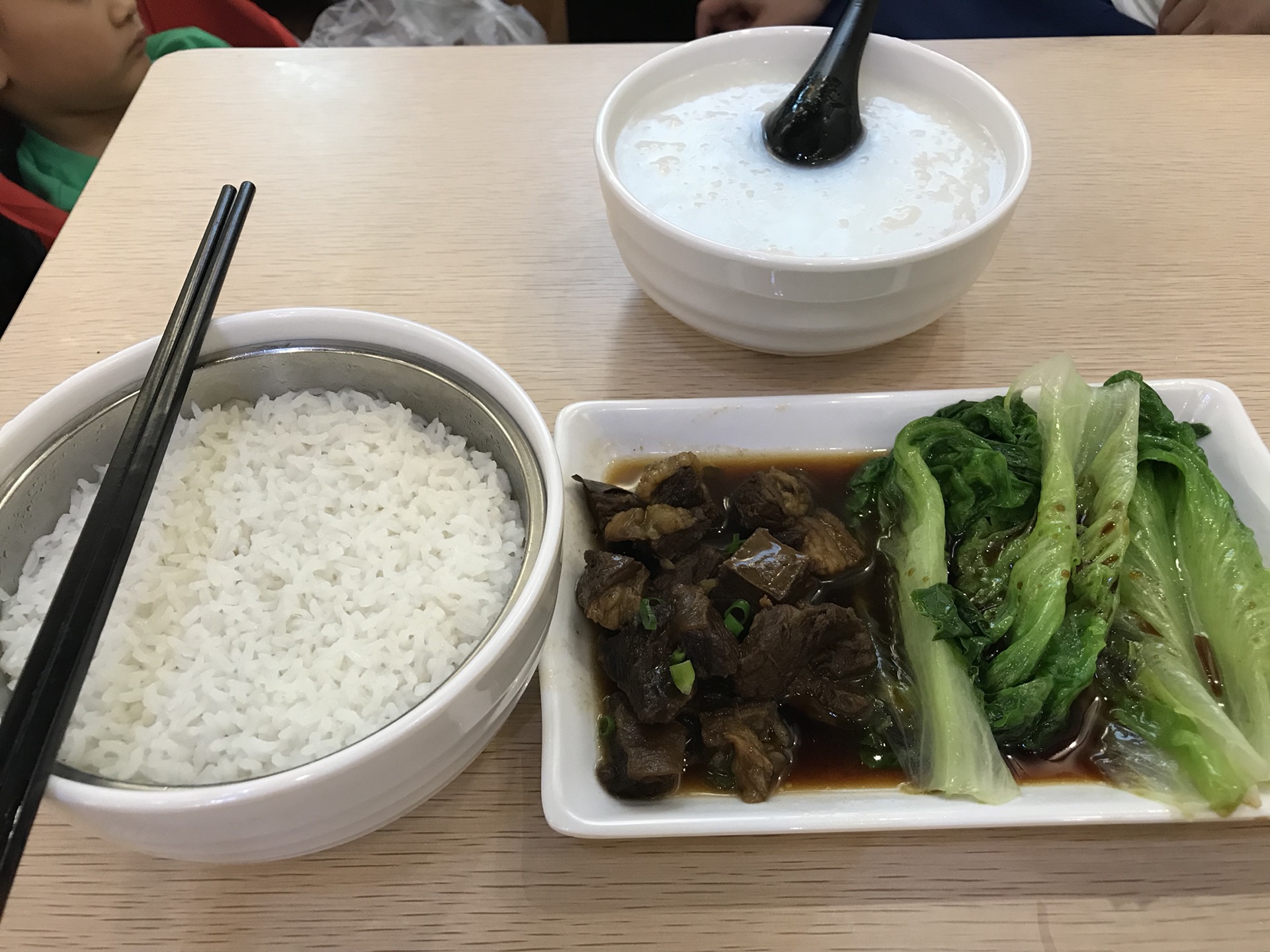 从长隆野生动物园出来,回到奥园城市天地,因为哥哥不舒服,所以找了一家有粥的店,店面很小,给他买了白粥,妹妹也吃不下,在我们旁边啃路边买的馕呢。有可能是我逛了一天饿了,我觉得挺好吃的呢。