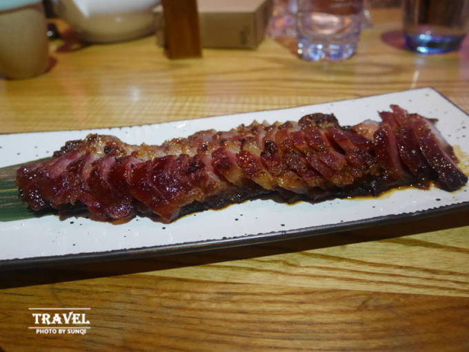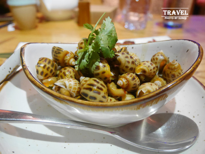 吃完回酒店睡午觉回血,晚饭前带小朋友去游泳池耍一耍。晚饭就去了酒店附近的盘古餐厅,点了荔枝木烤叉烧、辣酒煮花螺、双味芥兰、油泼面、芝士焗元贝,还有一个点心,结果吃到最后还送我们一盆不怎么好吃的糕,早知道电信不点了。结账252元,没有中午吃得开心。
